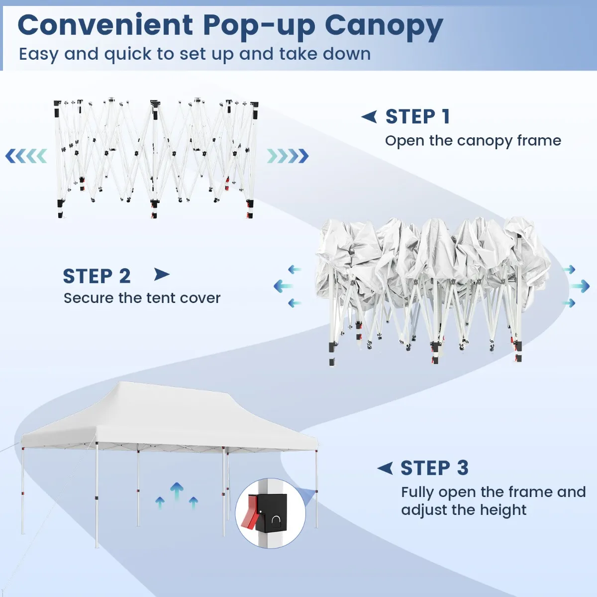 Eenvoudige installatie en verstelbare hoogte: Dankzij het eenvoudige, openklikbare ontwerp is deze buitentent snel en eenvoudig te installeren en te demonteren, zonder gereedschap. Hij is in hoogte verstelbaar op 3 niveaus (296/306/316 cm), waardoor je de luifel op de gewenste hoogte kunt aanpassen.
