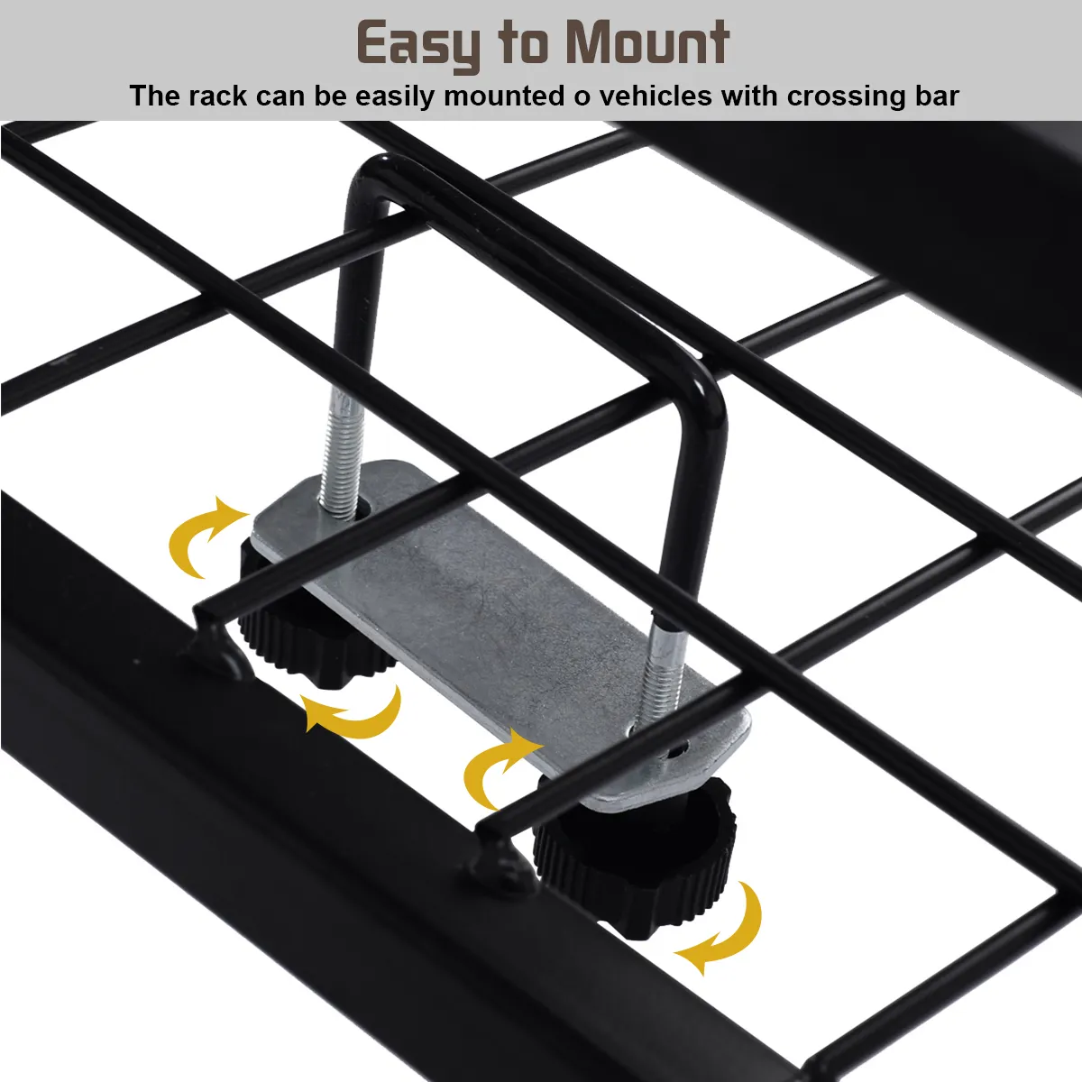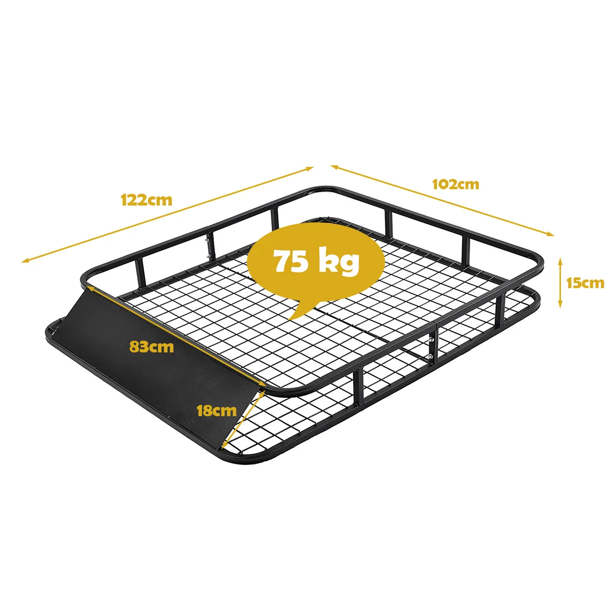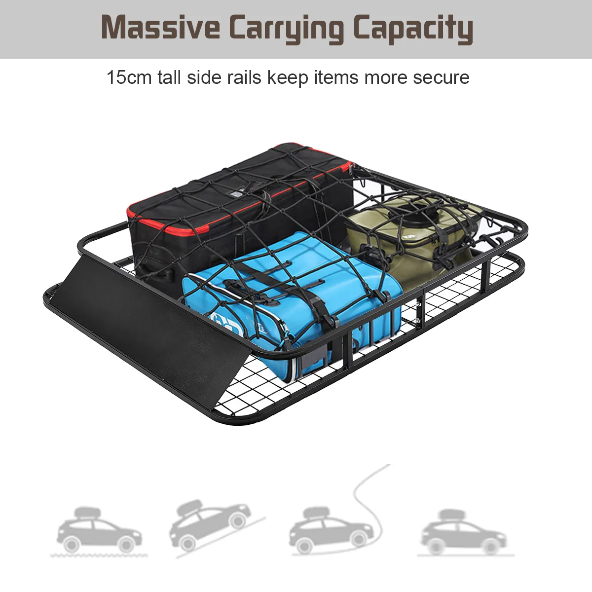【Enorme laadcapaciteit】Upgrade oversized bagage mand is 122 cm (L) x 102 cm (B) x 15 cm (H), die kan maximaliseren vrij te maken bagage ongeveer 75 kg gewicht van de binnenkant van uw voertuig. De onderste metalen stangen bieden voldoende bevestigingspunten om de bagage vast te zetten.