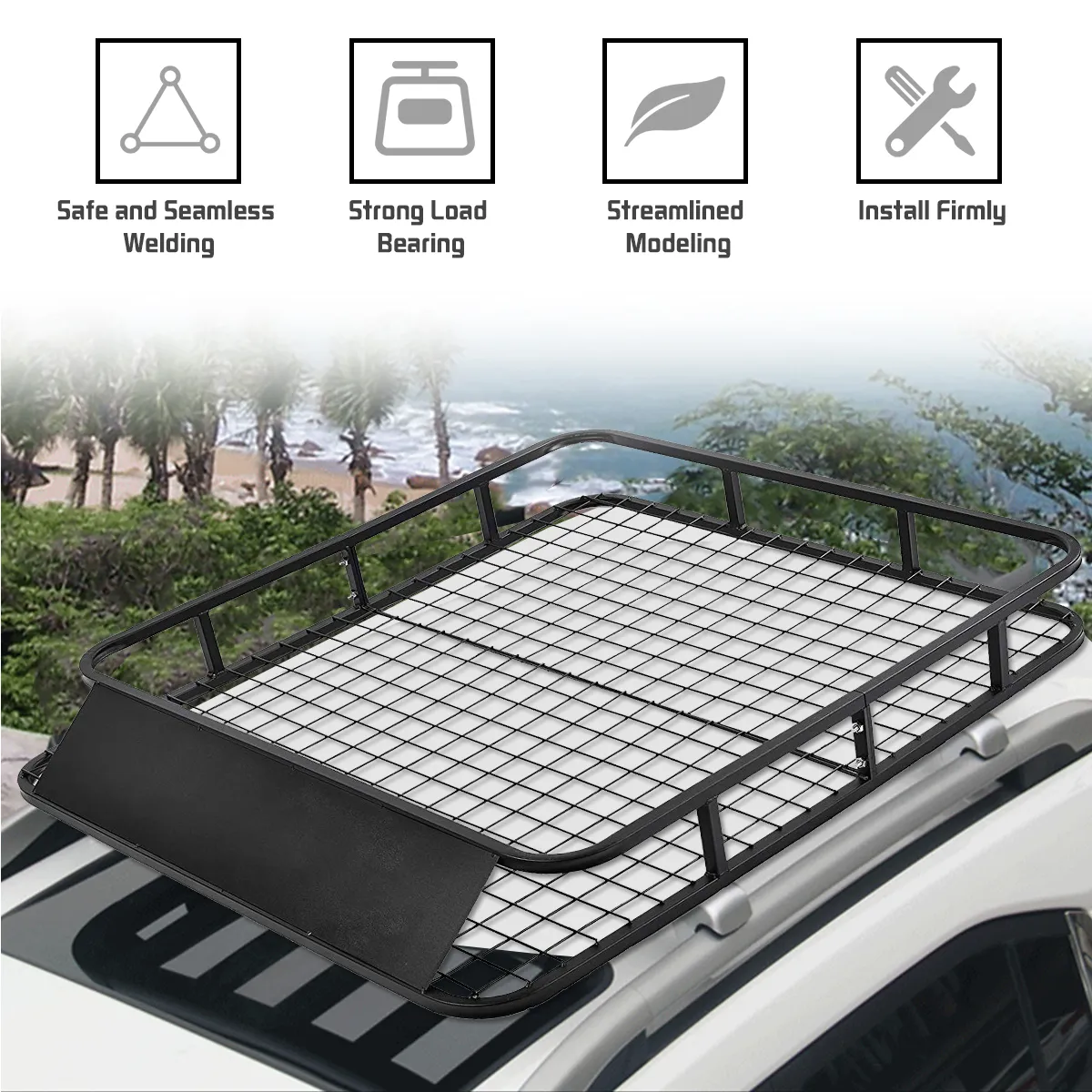 【Robuust ijzer】Deze dakrek mand is gemaakt van buisvormig ijzer om hoge sterkte en stevig ontwerp te bevorderen. Hoogwaardige materialen houden uw bagage veilig tijdens het rijden.