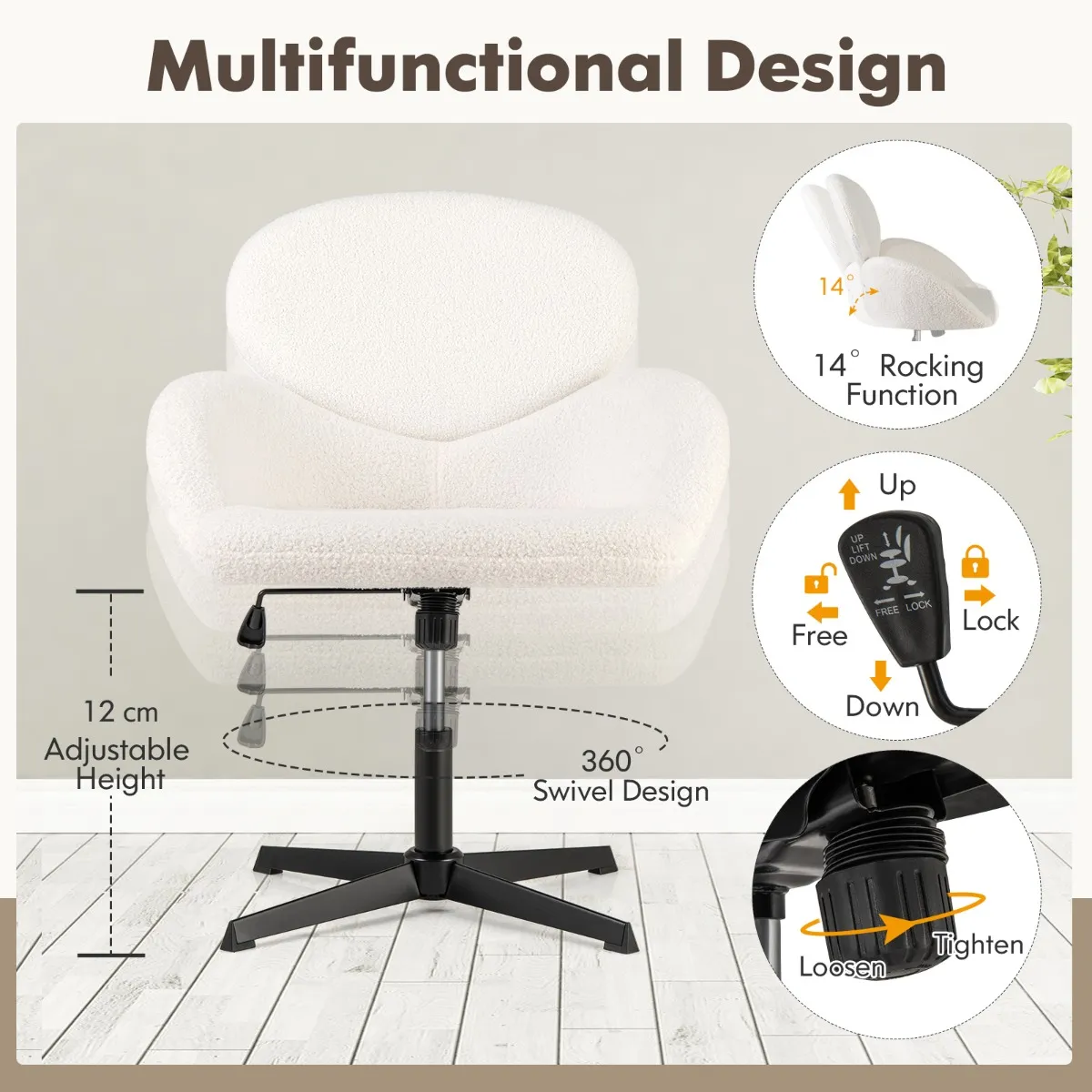 【Functioneel ontwerp】 Met een verstelbare zithoogte van 42 tot 54 cm is deze pluche bureaustoel geschikt voor mensen van verschillende lengtes. Bovendien zorgen de kantelfunctie en het 360° draaibare ontwerp ervoor dat je nog meer kunt ontspannen. En je kunt de functies met de knop ontgrendelen of vergrendelen en strakker of losser zetten.