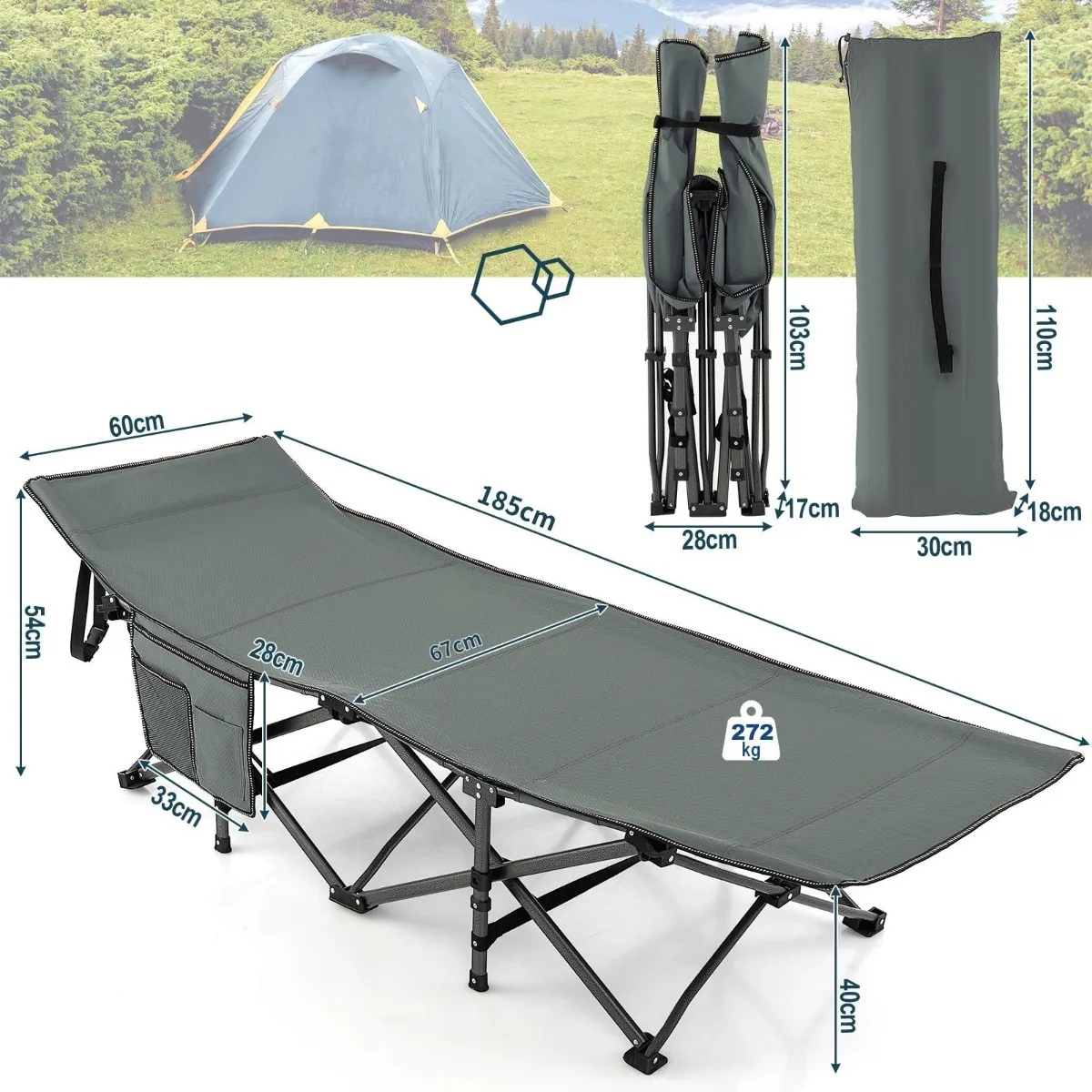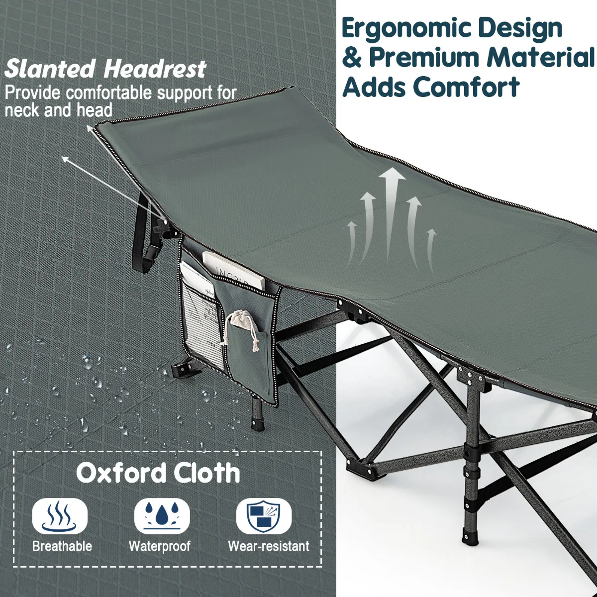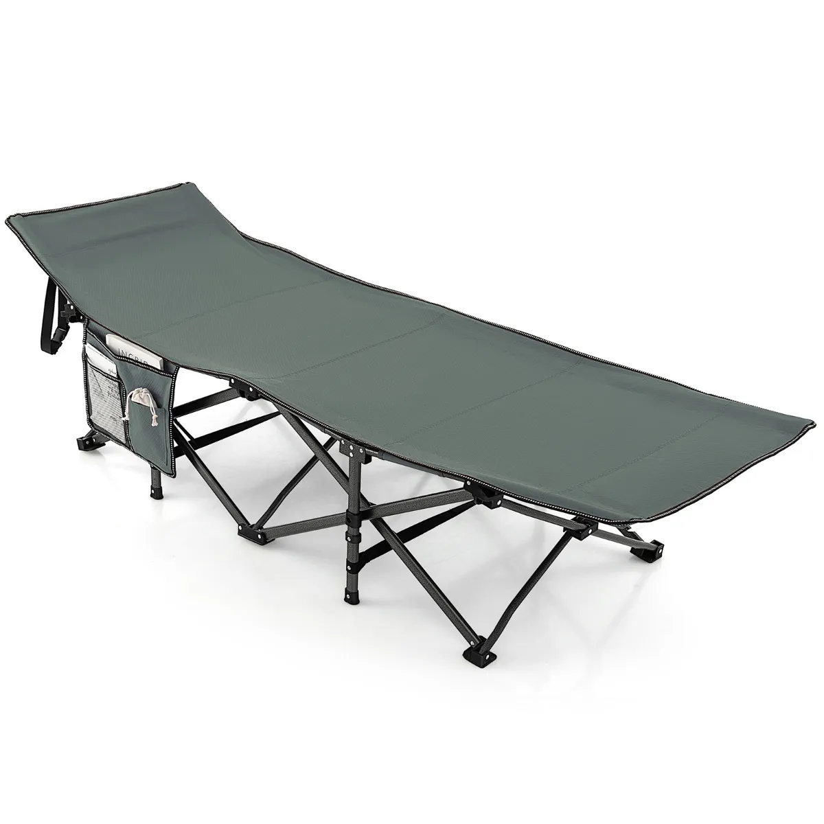 Eenvoudig in te klappen en te dragen: Het veldbed kan in enkele seconden worden geopend en weer worden ingeklapt en wordt geleverd met een draagtas voor transport. In het grote zijvak kunnen waterflessen, mobiele telefoons, sleutels, zonnebrillen, boeken enz. worden opgeborgen.