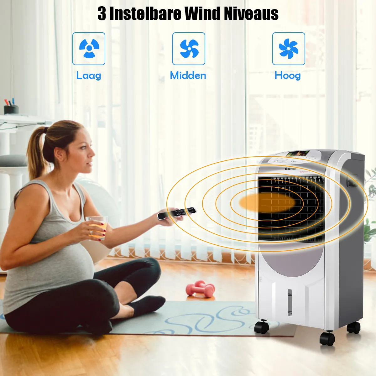 Gebruiksvriendelijk ontwerp: U kunt het apparaat eenvoudig bedienen dankzij het LCD-paneel, dat handig de snelheid en tijdinstelling weergeeft. Voor nog meer gemak wordt er ook een afstandsbediening meegeleverd voor direct gebruik. Je kunt de luchtkoeler overal in de kamer plaatsen en vanaf elke plek bedienen. Tegelijkertijd is het grote waterreservoir van 7 liter uitneembaar, waardoor het gemakkelijk schoon te maken is, terwijl het formaat zorgt voor een lange koelprestatie en je het niet vaak hoeft bij te vullen.