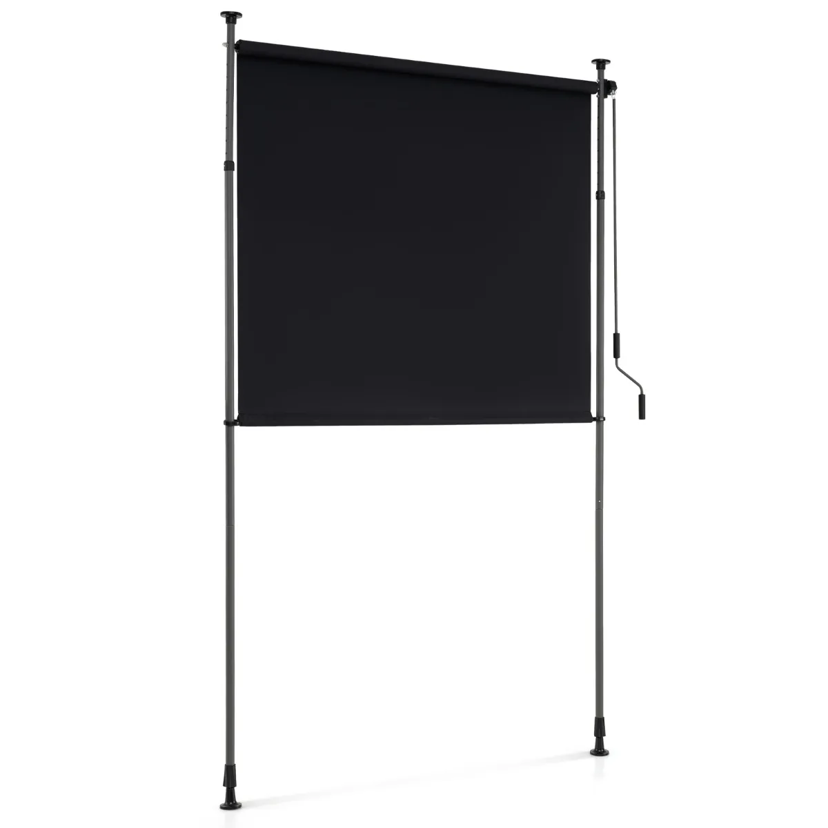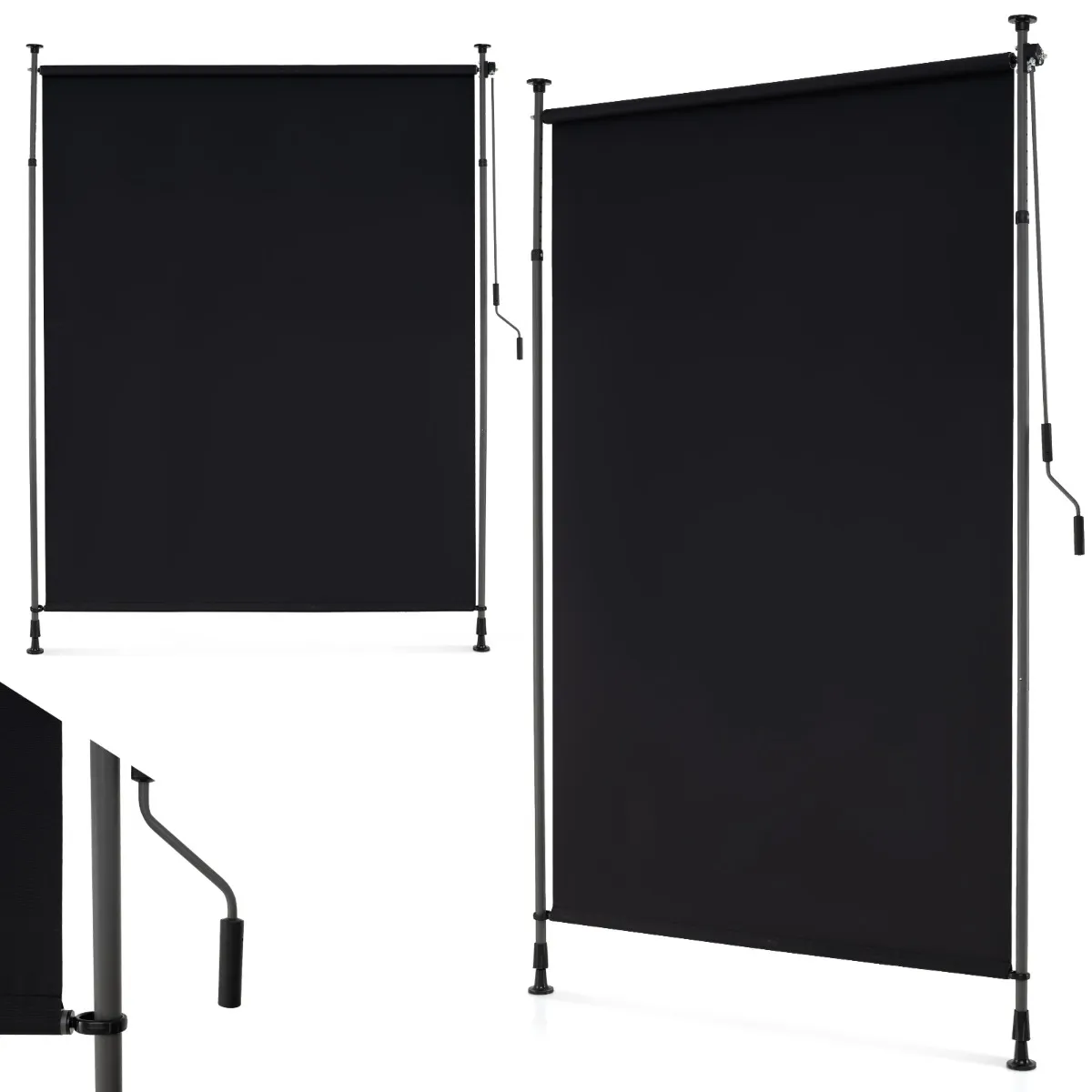 Sterke en duurzame constructie: De verticale palen zijn gemaakt van gepoedercoat metaal voor hoge sterkte en stabiliteit. De roestvrije aluminium rol verhoogt de duurzaamheid van het hele systeem.