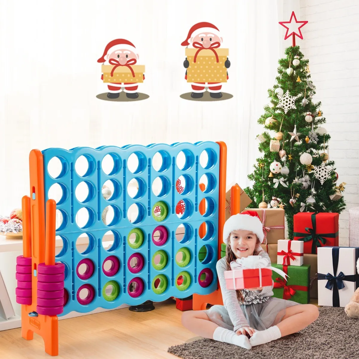 Eenvoudig op te zetten en schoon te maken: Onze enorme match 4-set kan moeiteloos in slechts een paar minuten worden opgezet en afgebroken. Je hebt ook geen gereedschap nodig om het in elkaar te zetten, dus je kunt het spel naar elk feest brengen. Het schoonmaken van het spel is ook extreem eenvoudig en je kunt het van tijd tot tijd afvegen met slechts een vochtige doek.
