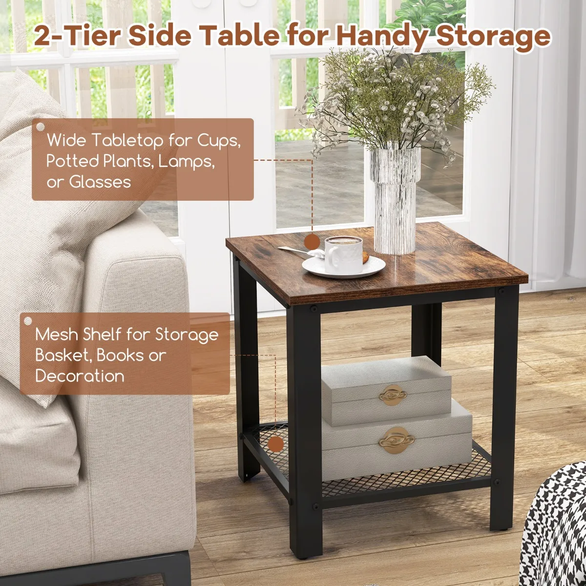 【Opbergruimte op 2 niveaus】 Het bovenste oppervlak biedt voldoende ruimte voor je dagelijkse benodigdheden, zoals lampen, boeken of mokken, terwijl de onderste gaasplank extra opbergruimte biedt, perfect voor tijdschriften of decoratieve items.