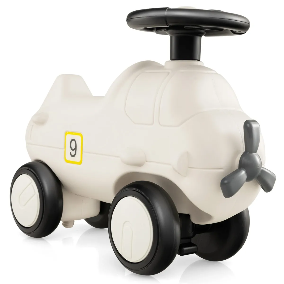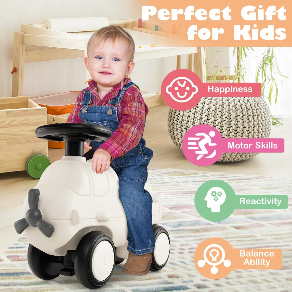 Uniek vliegtuiguiterlijk: Deze kinderloopauto heeft een propeller aan de voorkant, decoratieve cijfers en minivleugels, waardoor hij meer op een echt vliegtuig lijkt. Kinderen kunnen zich dus voorstellen dat ze vliegen als ze de wagen met hun voeten bewegen.