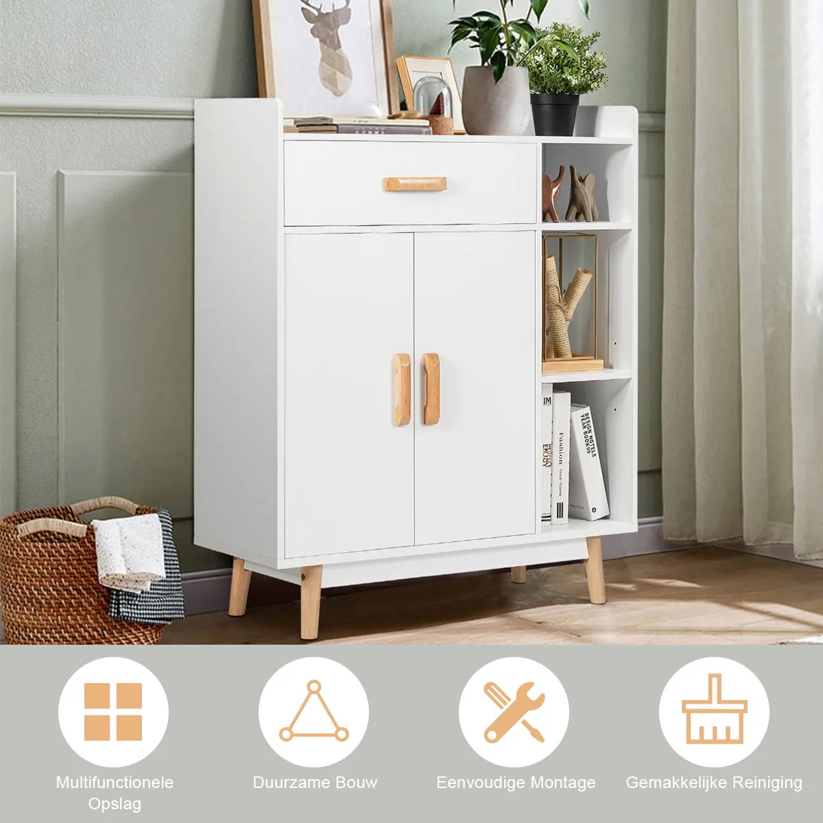Door de combinatie van een ruime opbergruimte en een moderne uitstraling is onze opbergkast niet alleen een praktisch meubelstuk, maar ook een perfecte woning decoratie!