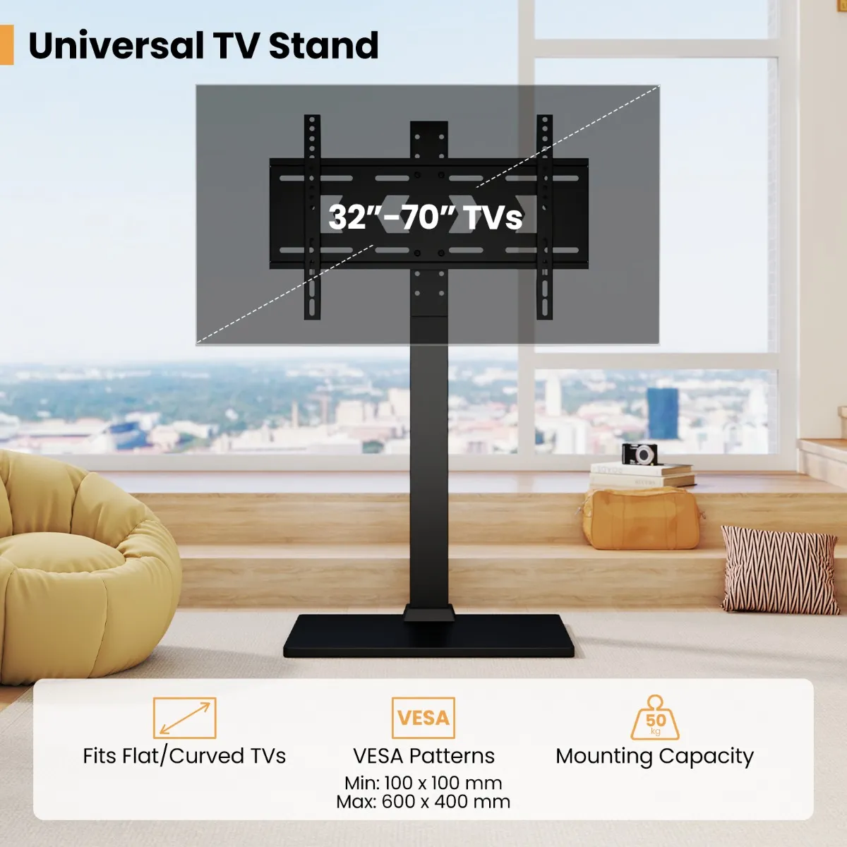 【Universele tv-standaard】: Deze tv-standaard is ontworpen voor tv’s van 32 tot 70 inch met een gewicht tot 50 kg. Het ondersteunt VESA-montagepatronen van 100 x 100 mm tot 600 x 400 mm, waardoor compatibiliteit met de meeste tv-schermen gegarandeerd is.