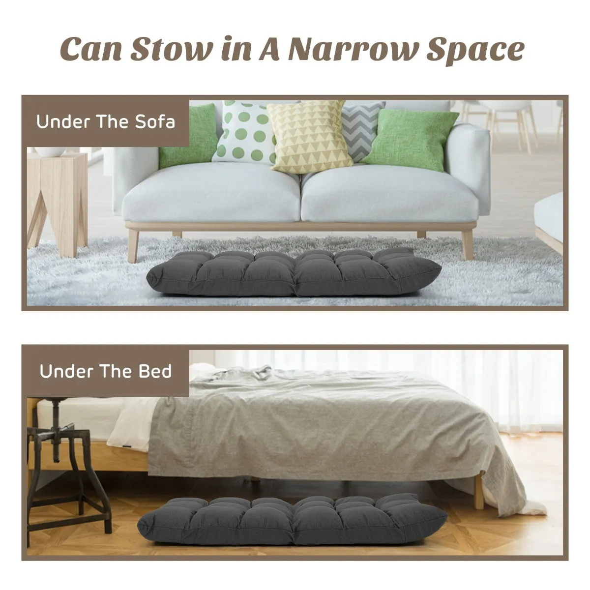 Deze vloerstoel kan gemakkelijk in 14 verschillende posities worden versteld en snel in uw favoriete positie worden gezet. Bovendien kunt u hem plat opbergen in een smalle ruimte wanneer u hem niet gebruikt. De verdikte spons in combinatie met de goed ademende katoenen en linnen stof, kan u extra gewoon comfort en ultiem genot bieden. Als zit- of ligmeubel kan de stevige stalen structuur een sterke ruggensteun bieden en de druk op de rug verminderen. Bovendien heeft het een goed draagvermogen van 120kg, maar het lichte gewicht is gemakkelijk te dragen. Het zal ideaal zijn voor gebruik tijdens het spelen van spelletjes of ontspannen met een boeiende lectuur in de hand en ga zo maar door.