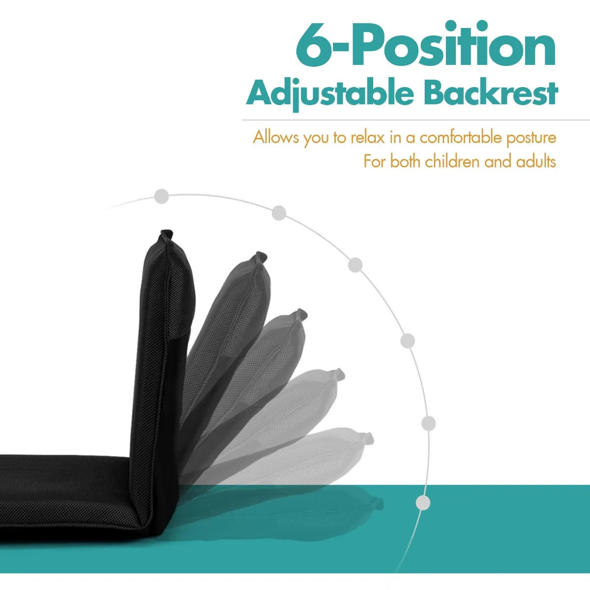 6-traps verstelbare rugleuning: De in meerdere posities verstelbare rugleuning zorgt ervoor dat je meerdere uren comfortabel kunt zitten bij een goede lichaamshouding. De rechte rugleuning helpt je om rechtop en gezond te zitten. De vloerstoel kan plat worden neergelegd, waardoor hij zeer veelzijdig is.