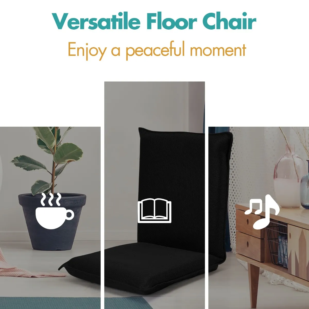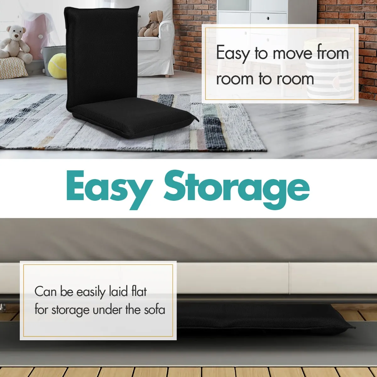 Deze superlichte en gemakkelijk te vervoeren vloerstoel is perfect voor vele activiteiten bij het zitten, zoals lezen, spelen, mediteren enz. Met de verstelbare rugleuning, die door een sterk metalen frame wordt gedragen, kun je de hellingshoek aanpassen en urenlang in een ontspannen houding zitten. De gevoerde zitting met stoffen bekleding is zeer comfortabel en bovendien onderhoudsvriendelijk. De vloerstoel is zeer geschikt voor werk en vrije tijd, omdat hij je een goede rugsteun biedt. Het is gemakkelijk om hem weg te zetten wanneer hij niet in gebruik Dit bespaart ruimte en zorgt voor orde.
