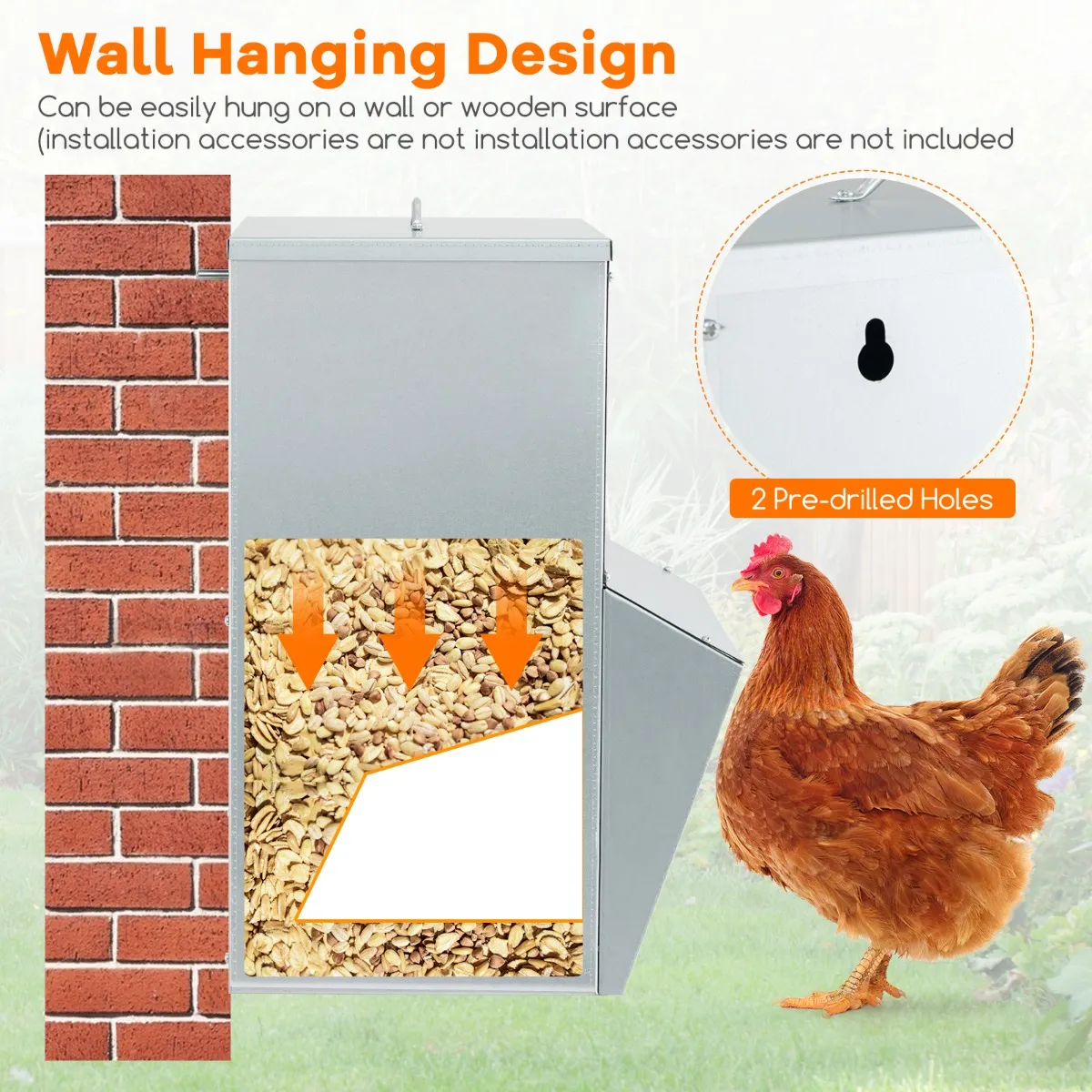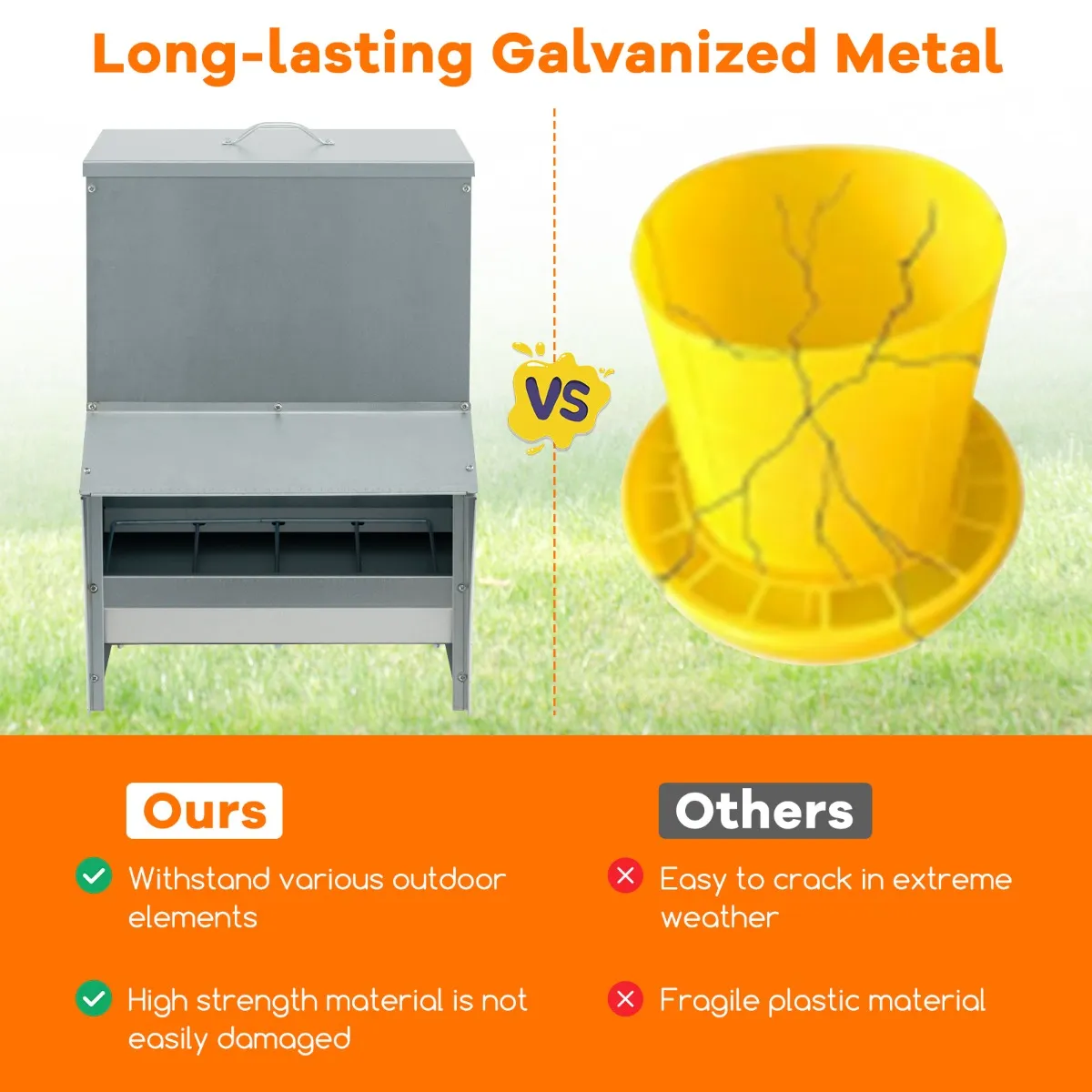 【Grote capaciteit voor het voeren】: De kippenvoerder biedt een grote capaciteit van 22 kg, zodat hij langere periodes tussen de navullingen mogelijk maakt, wat hem tot de ideale keuze maakt voor kleine achtertuinen en grotere boerderijen. Bovendien vergemakkelijkt de voederdispenser met grote capaciteit het dagelijkse beheer van de dieren.