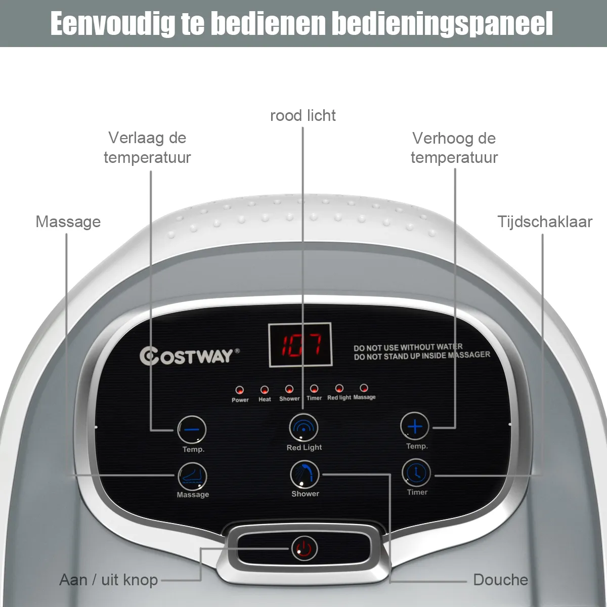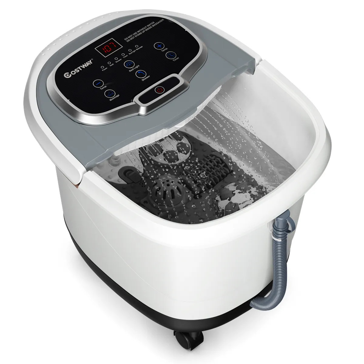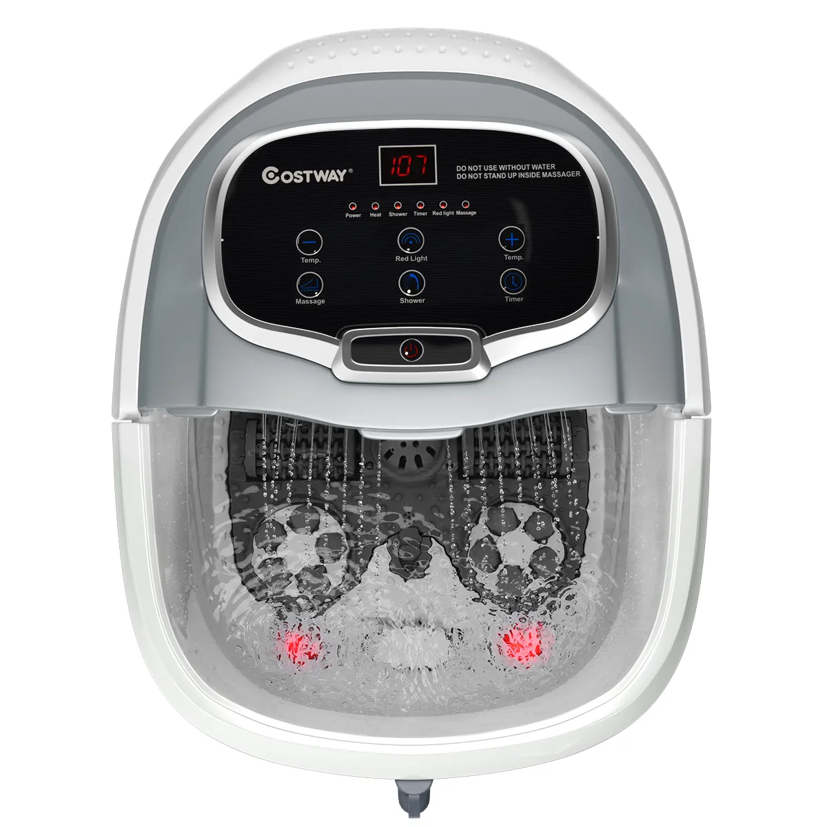 【Douche functie en rood licht】Er is een douchestang met 3 verstelbare hoeken om de stijve en pijnlijke kuitspieren te ontspannen en vermoeidheid te verminderen. Het rode licht kan effectief worden gedesinfecteerd en gesteriliseerd. De medicijn doos kan het voetbad effect versterken bij het aanbrengen van kruiden of zeezout.