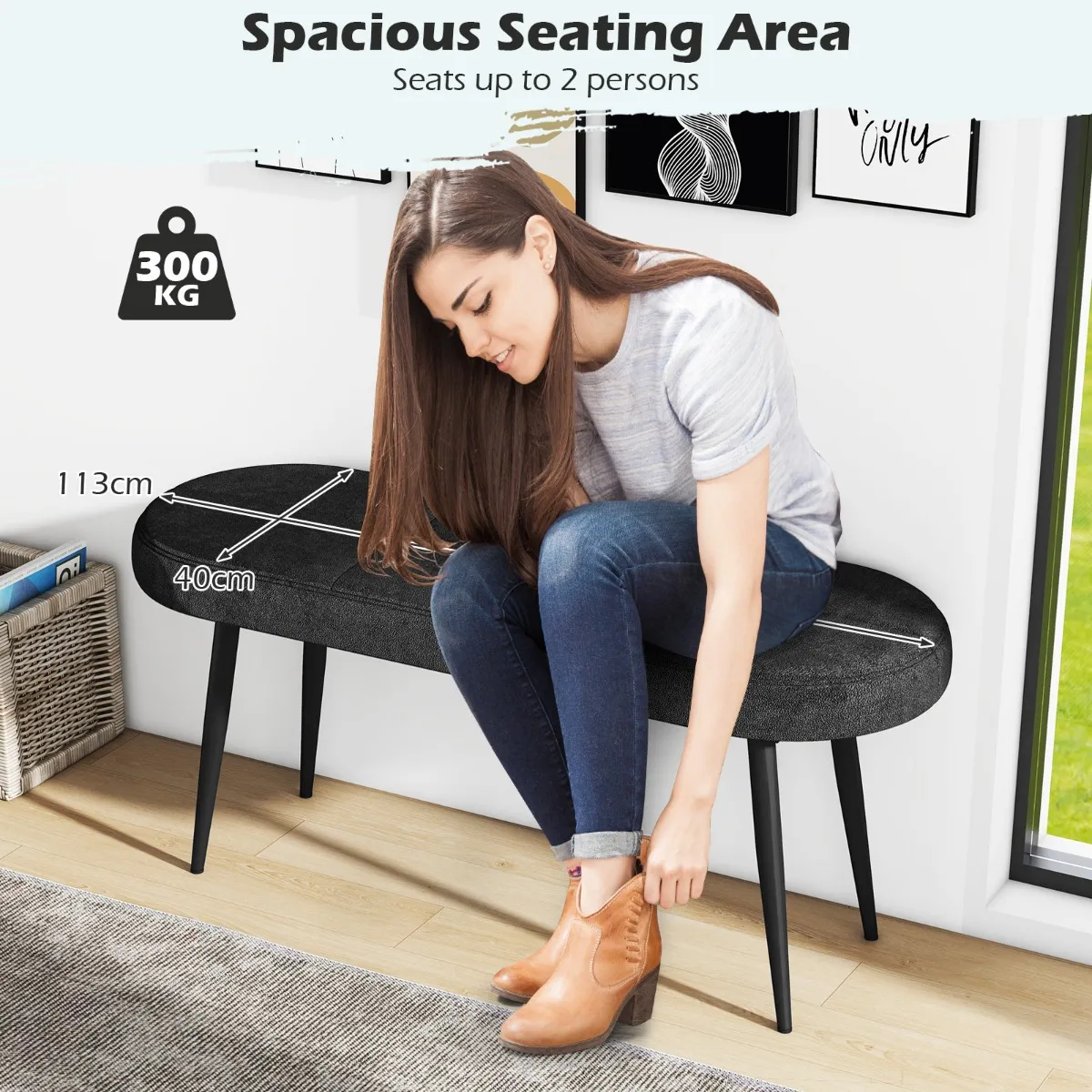 【Redelijke afmetingen】: De zitting meet 113 cm x 40 cm (L x B), wat ruim genoeg is voor maximaal 2 personen tegelijk. Bovendien kun je je schoenen onder de bank plaatsen dankzij de zithoogte van 48 cm.