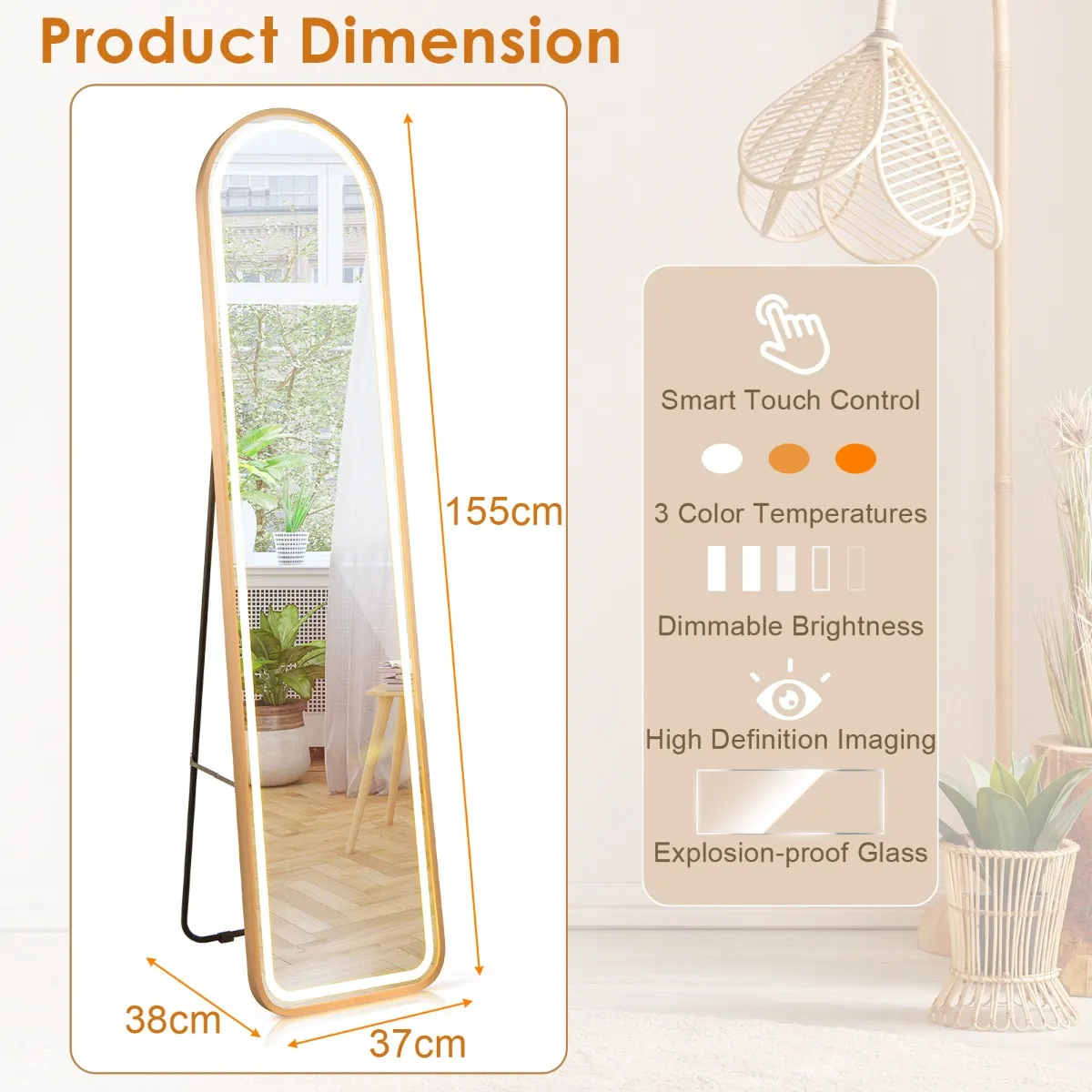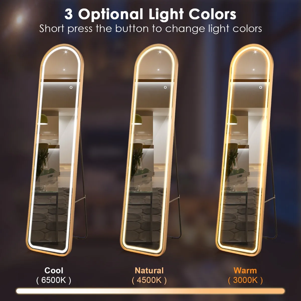 Maak make-up en aankleden gemakkelijker met onze ronde, LED-verlichte spiegel over de volledige lengte! Gemaakt van HD-zilveren spiegel met explosieveilige film, duurzaam en veilig. Het stevige aluminium frame en de LED-strips beloven langdurig gebruik. Met een slimme aanraakknop kunt u de kleur en helderheid naar wens selecteren. Wat de installatie betreft: je kunt hem enerzijds op een standaard gebruiken, anderzijds kan hij ook aan de muur worden bevestigd. Waar het ook is, het geeft je een beter zicht om gemakkelijk je outfit te controleren.