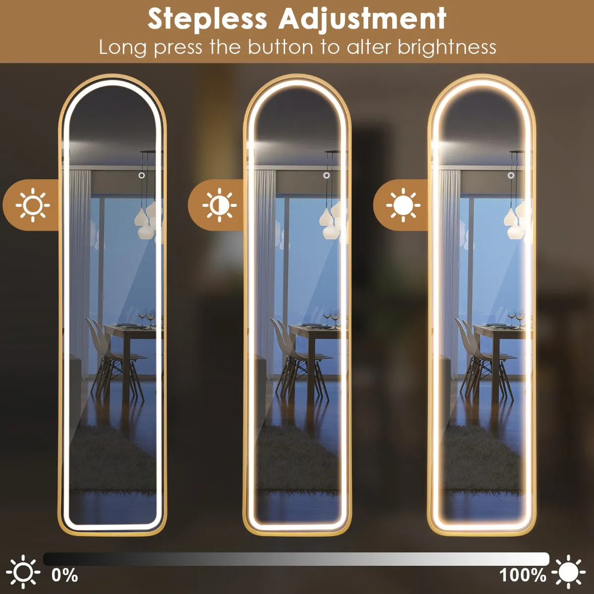 Veelzijdige passpiegel: Deze verlichte passpiegel biedt een beter zicht om de hele outfit te controleren. Bovendien doet de stijlvolle look het goed op verschillende plaatsen, zoals de badkamer, slaapkamer, kleedkamer of zelfs een kledingwinkel, kapsalon en nog veel meer.