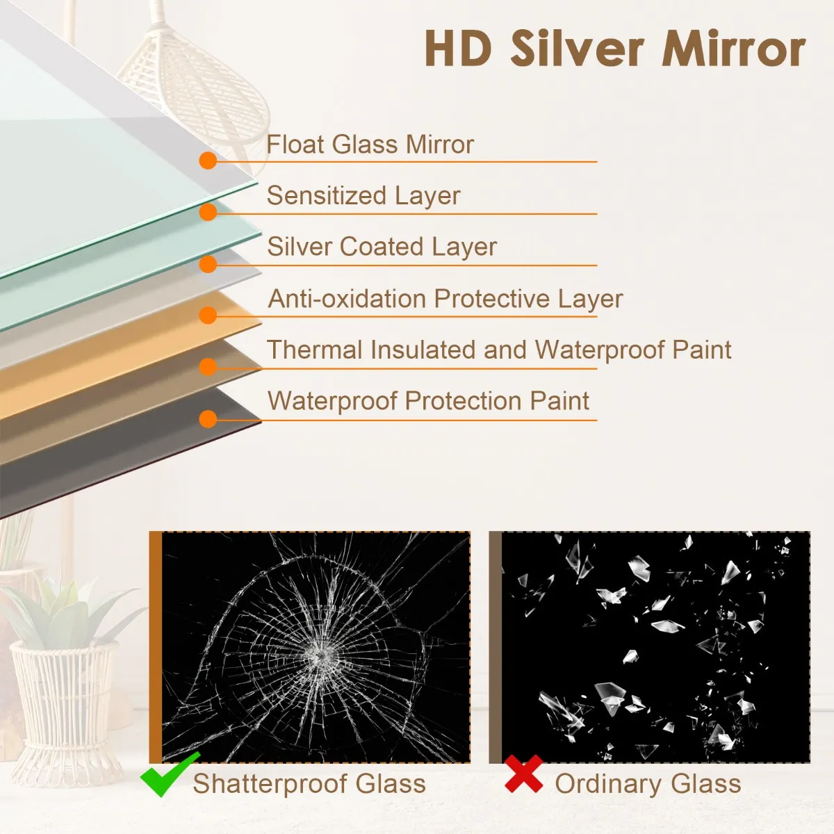 HD, onbreekbaar glas: De LED-verlichte spiegel heeft een high-definition zilveren spiegel voor een echte, heldere reflectie. Nog belangrijker, in vergelijking met gewone spiegels is deze spiegel ontworpen met een onbreekbare folie, die kinderen en huisdieren uit de buurt van het gebroken glas houdt.
