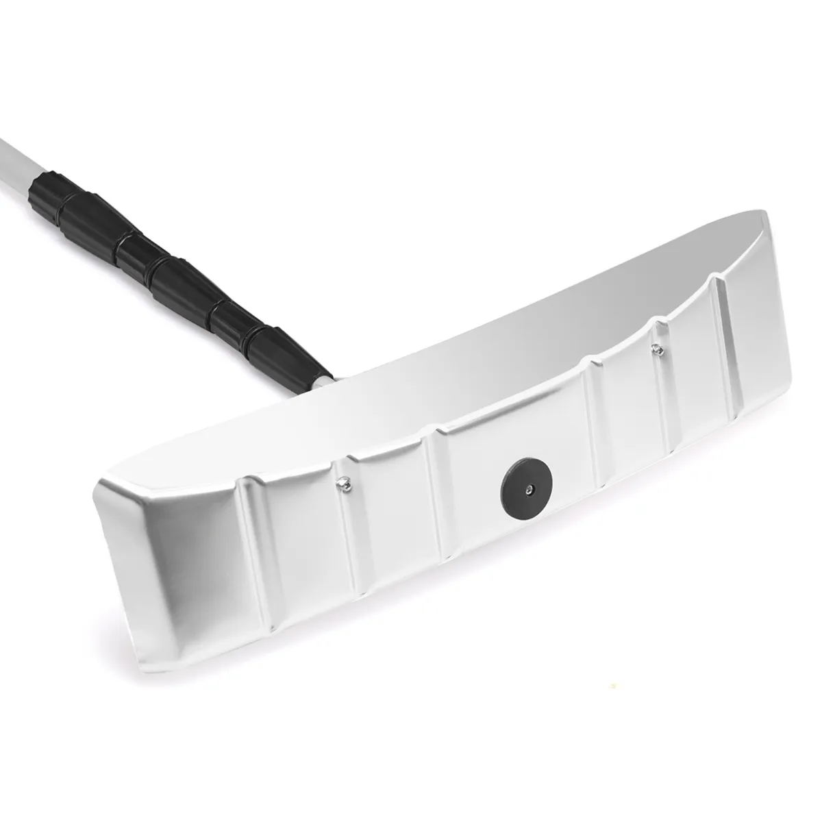 Met deze sneeuwschep kunt u zelfs grote hoeveelheden sneeuw snel en moeiteloos verwijderen. De telescoopstang kan naar wens in hoogte worden versteld om zelfs moeilijk bereikbare sneeuw van daken te verwijderen. Het heeft een grote schuifkop met een stabiel en robuust ontwerp. Bovendien kan hij gemakkelijk in elkaar worden geschoven tot een compact formaat of na de winter gemakkelijk en eenvoudig worden gedemonteerd om extra ruimte te besparen.