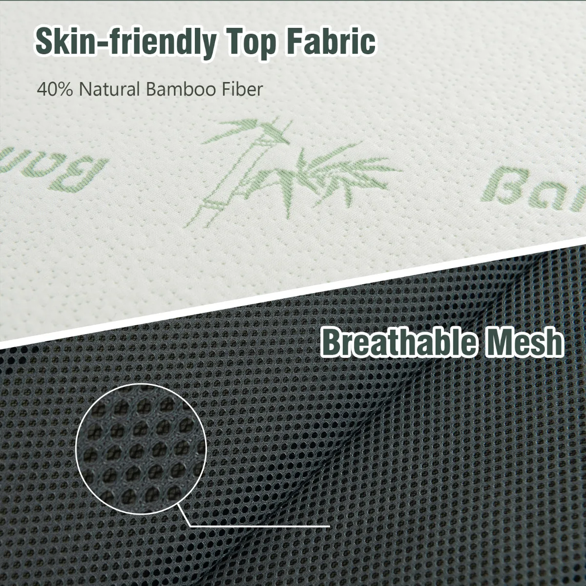 Huidvriendelijke buitenstof: De witte buitenstof met unieke bamboepatronen is gemaakt van 40% natuurlijke bamboevezels en is zacht, huidvriendelijk en voelt aangenaam aan. Nog belangrijker is dat de bamboevezelstof een natuurlijke geur heeft die geuren verspreidt, zodat de matras een verfrissende geur behoudt in kleine ruimtes zoals een caravan.