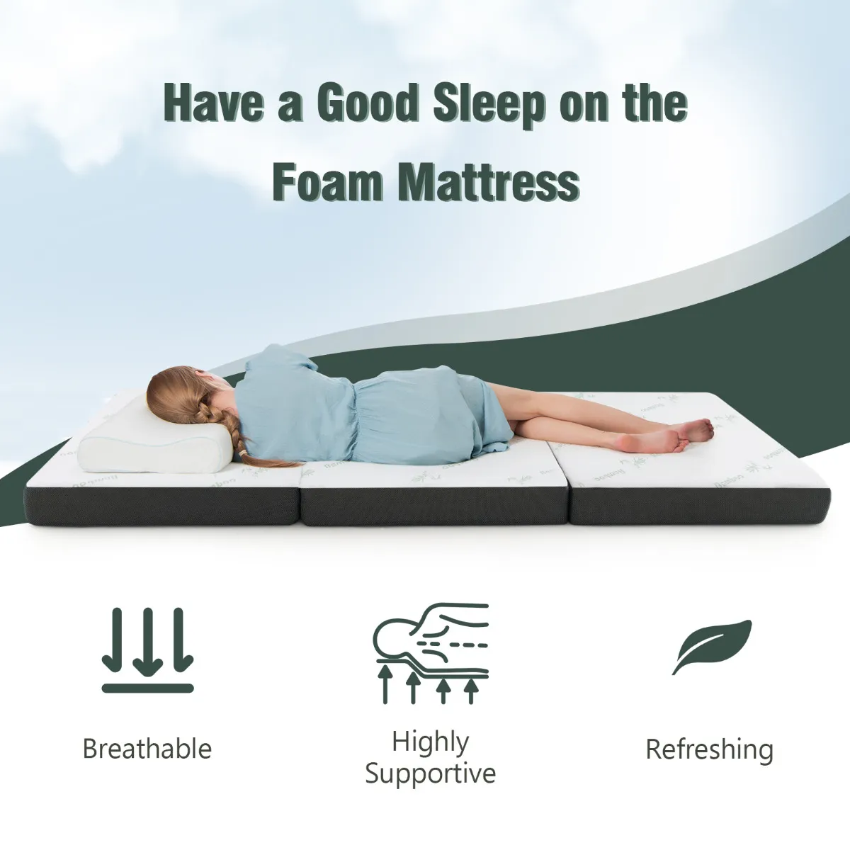 Ruimtebesparende drievoudige vouwmatras maakt het mogelijk om overal te slapen
