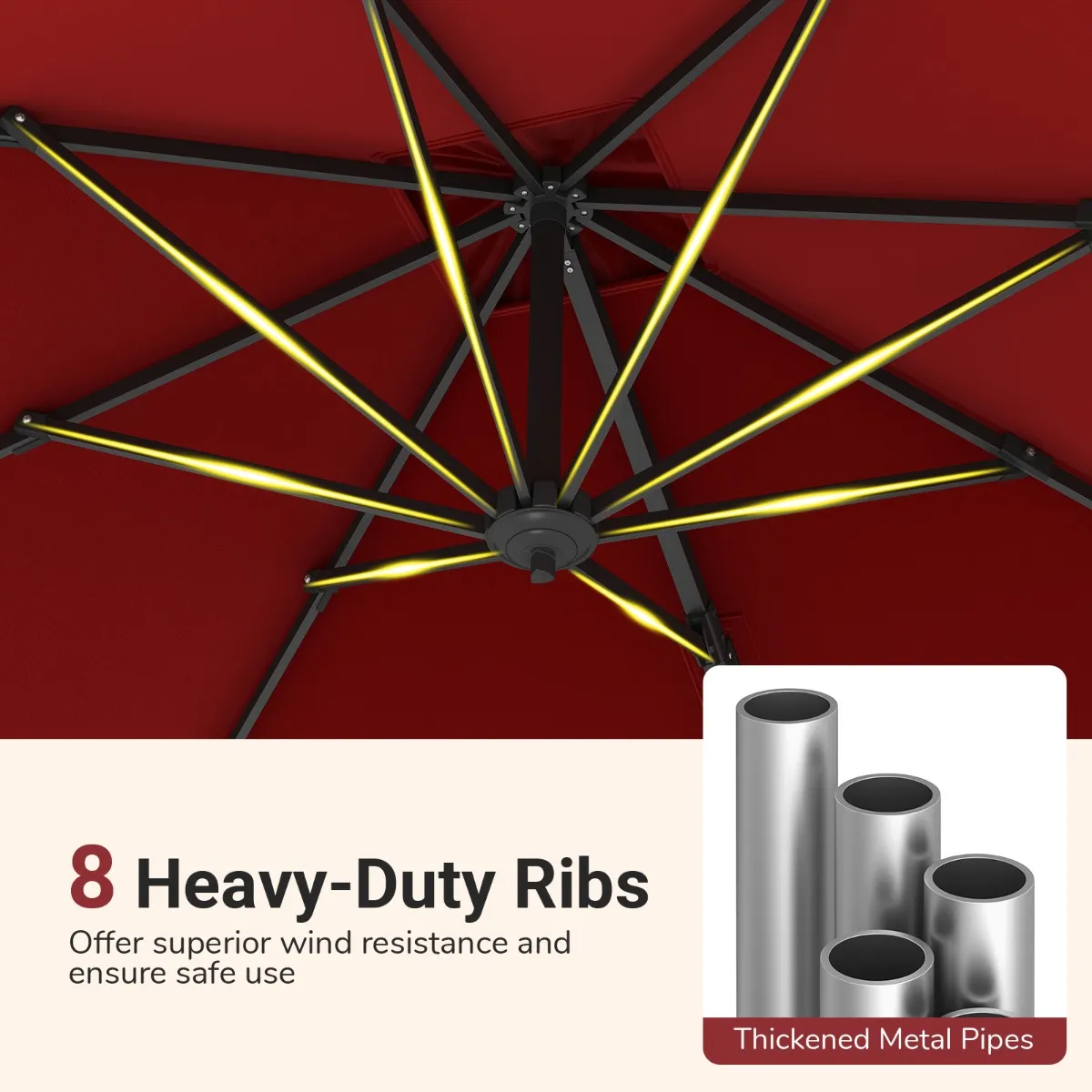 Duurzame constructie: De parasol wordt ondersteund door een dikke aluminium mast en 8 stevige ribben, waardoor hij uitstekende windbestendigheid biedt. De verstevigde driehoekige structuur aan de bovenkant zorgt voor extra stabiliteit.