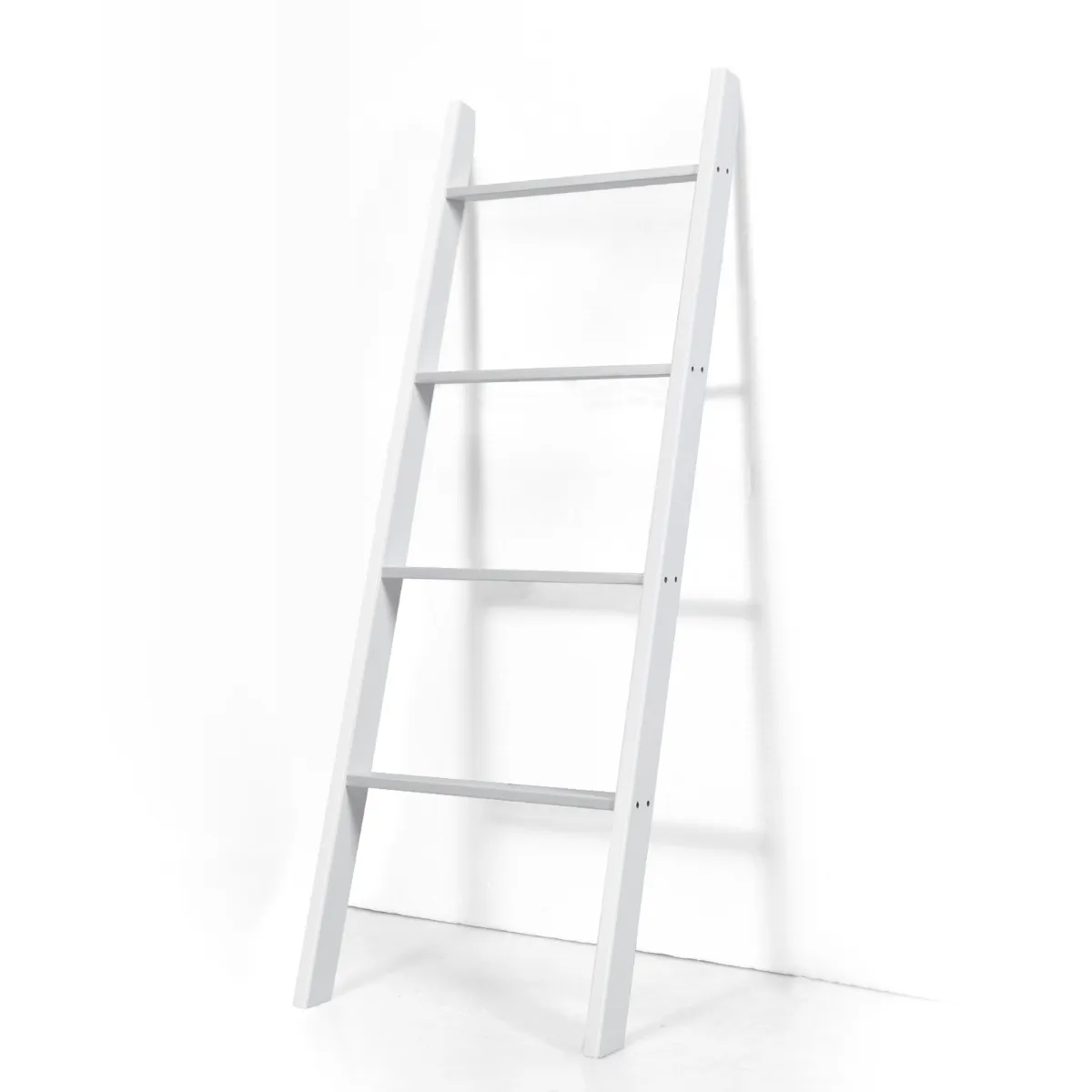 Het grenenhouten frame zorgt voor grote sterkte en het draagvermogen is maximaal 80 kg. Dankzij het zorgvuldige schilderwerk heeft het rek bovendien een langere levensduur. Wat de stabiliteit betreft, heeft het antislip schuine vlakken, zodat de ladder op zijn plaats kan worden gehouden. De plank speelt verschillende rollen op verschillende plaatsen. Het kan in de woonkamer worden geplaatst om decoraties op te bergen, in de badkamer voor toiletartikelen, of in de slaapkamer voor dekens.