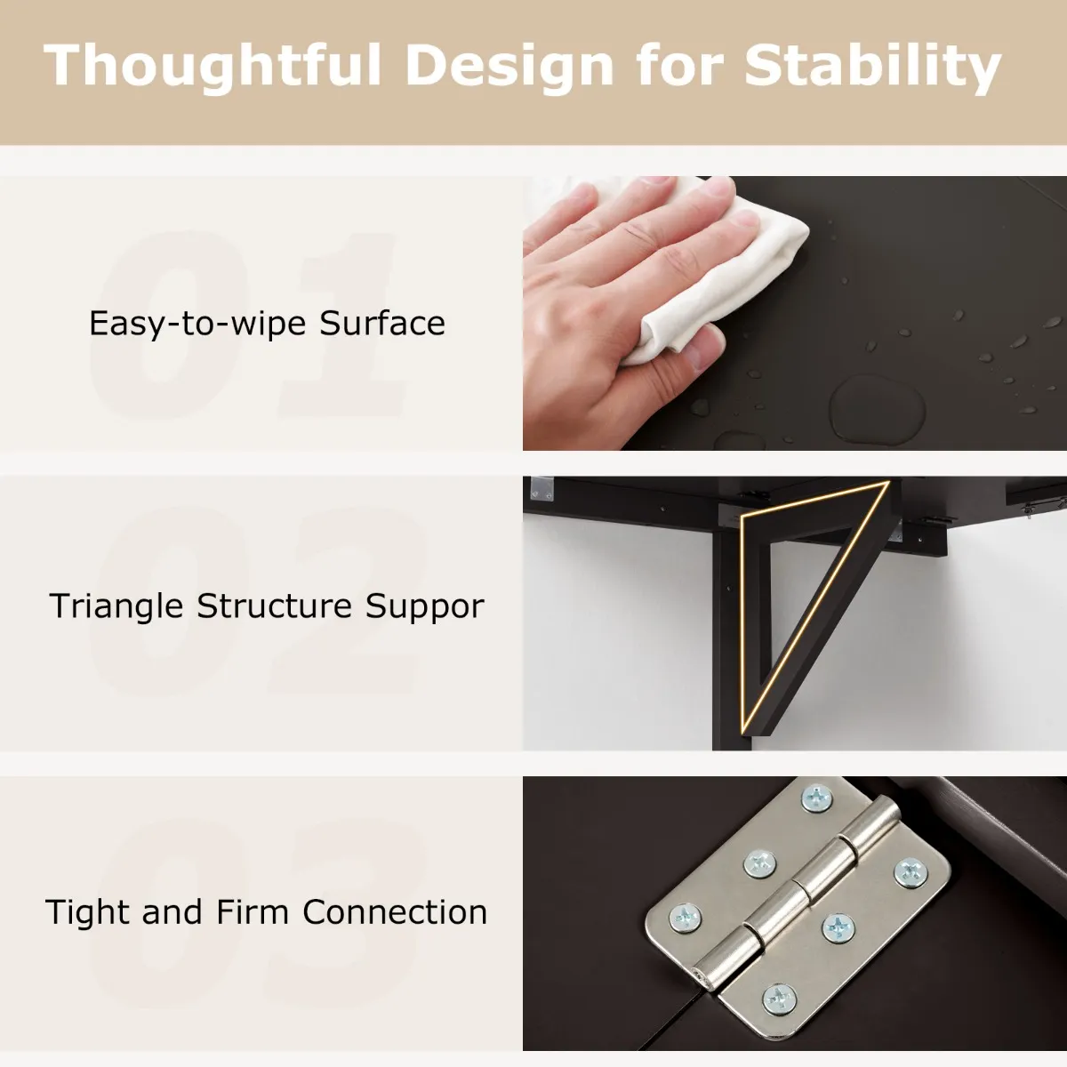【Universele compatibiliteit】: Deze inklapbare wandtafel is ontworpen om naadloos in elke omgeving te passen en is geschikt voor verschillende wandoppervlakken, waaronder beton- en bakstenen muren. Geniet van het comfort van een veelzijdige en aanpasbare werkplek.