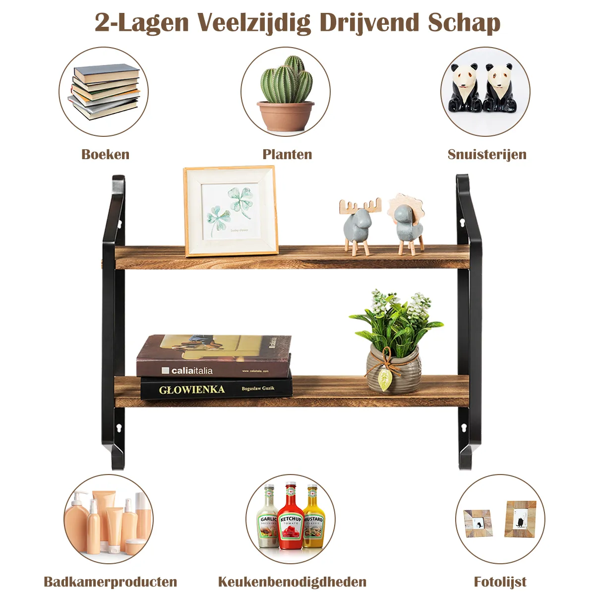 【Functionele 2-laagse opslag】Deze zwevende plank biedt u extra opbergruimte die geschikt is voor een beperkte leefruimte. Het 2-laagse ontwerp helpt bij het opbergen en organiseren van uw verschillende artikelen. En deze wandplank kan u helpen de werktafel op te ruimen en uw huis in orde te maken.