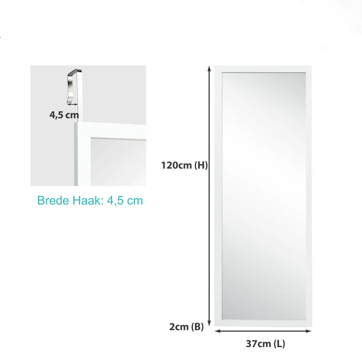 Voorzien van 2 haken om de spiegel boven de deur te hangen