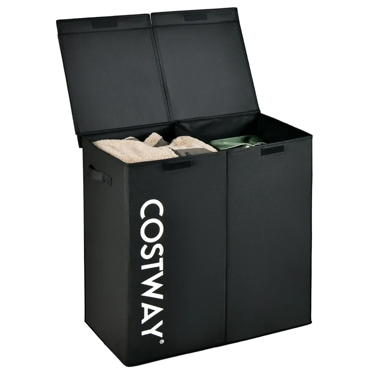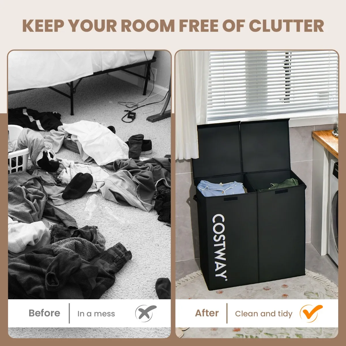 De grote inhoud van 115 liter biedt voldoende opbergruimte voor je kleding, handdoeken en beddengoed. Bovendien kun je dankzij het ontwerp met 2 delen kleding van verschillende kleuren en materialen sorteren. De wasmand is draagbaar door de zijhandgrepen en een perfecte keuze voor wasruimte, badkamer en slaapkamer.
