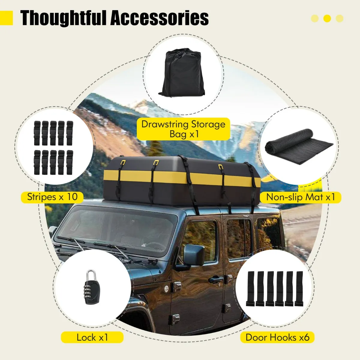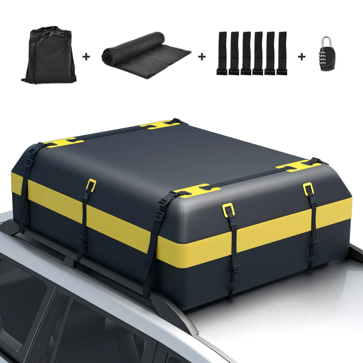 【Waterdicht materiaal】Naast duurzaamheid en scheurvastheid geeft het PVC-materiaal deze dakdrager ook een waterdichte functie. De waterdichte ritsen zijn bedekt met een verlengd regengordijn om de spullen binnenin extra te beschermen.