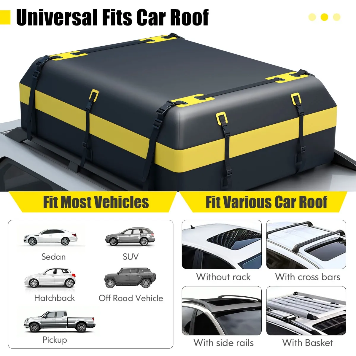 【Passen op alle auto’s】Naast 10 verstevigde riemen bevat dit waterdichte bagagerek ook 6 deurhaken, wat betekent dat het werkt met alle voertuigen zonder dakdrager, zijrails, dwarsstangen of mand/bak. Je kunt het op je pick-up, terreinwagen, SUV, enz. zetten.