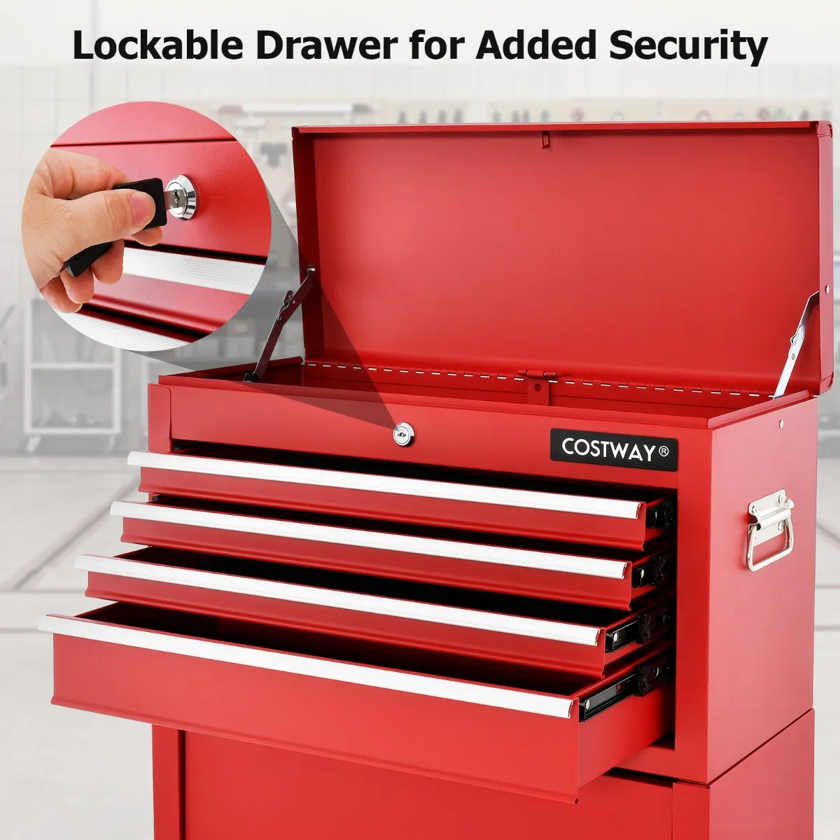 【Veelzijdige opbergoplossing】Deze 2-in-1 gereedschapskistcombinatie beschikt over 4 niveaus met ruime laden en een bovencompartiment, waardoor er voldoende opbergruimte is voor al uw gereedschap en accessoires. Houd alles georganiseerd en gemakkelijk toegankelijk met deze veelzijdige opbergoplossing.