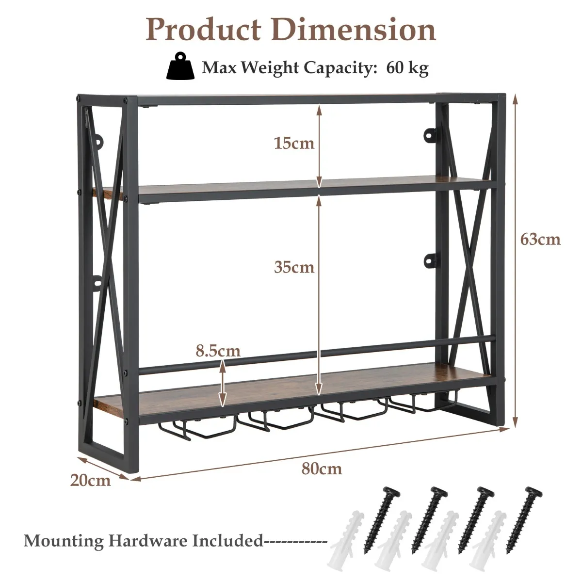 Robuuste en veilige structuur:Â Het solide en roestvrije metalen frame maakt de wijnhouder voor wandmontage duurzaam en stabiel. Bovendien verhogen de versterkte X-vormige structuur en de valbestendige dwarsstang niet alleen de stabiliteit, maar voorkomen ook het vallen van voorwerpen.