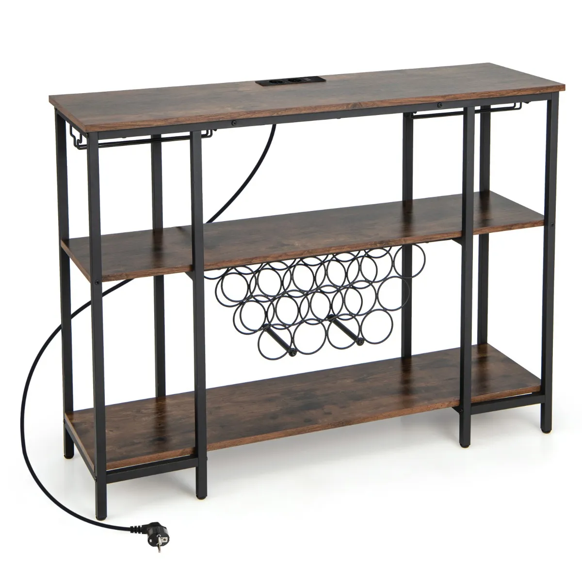 Ben je op zoek naar een wijnrek dat gevarieerde opbergruimte biedt, een geïntegreerd laadstation biedt en geschikt is voor verschillende scenario’s? Zoek niet verder. Dit wijnrek is uitgerust met 3 grote planken, 2 glashouders en 15 flessenrekken en biedt voldoende ruimte voor het netjes opbergen van je keukengerei, eetgerei, glaswerk, wijn, kommen en specerijen. Bovendien beschikt het over een geïntegreerd laadstation met 2 wisselstroomstopcontacten (125 V/12 A) en 2 USB-poorten (5 V/2 A) om je smartphones, tablets en kleine apparaten comfortabel op te laden. Enerzijds garanderen de verstelbare voetkussens stabiliteit op elke ondergrond, terwijl de houtnerf aan de andere kant voor een prachtige touch zorgt.