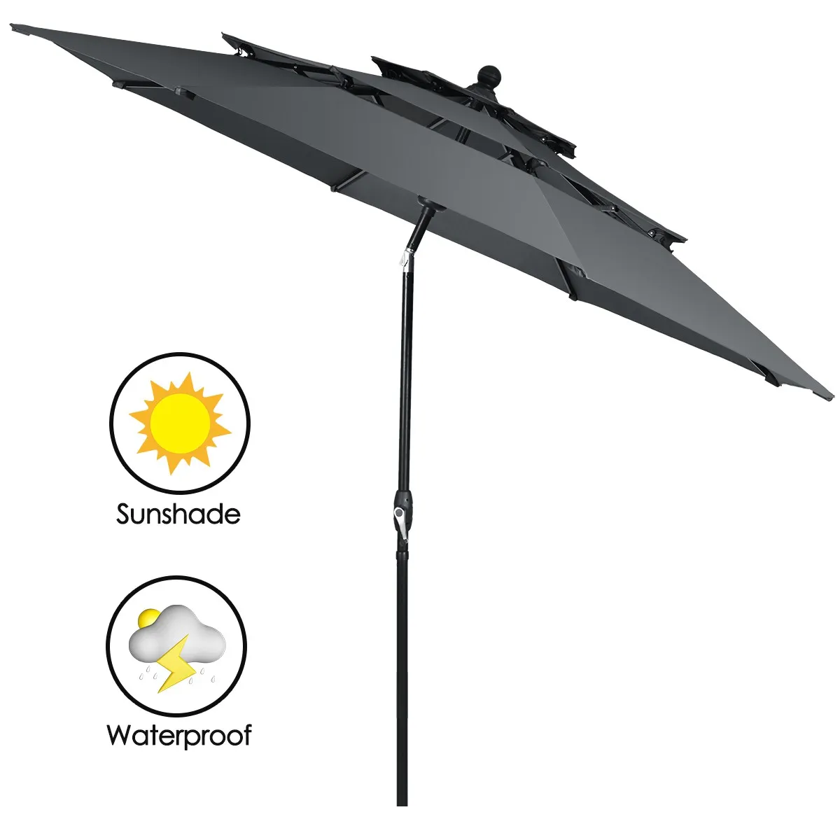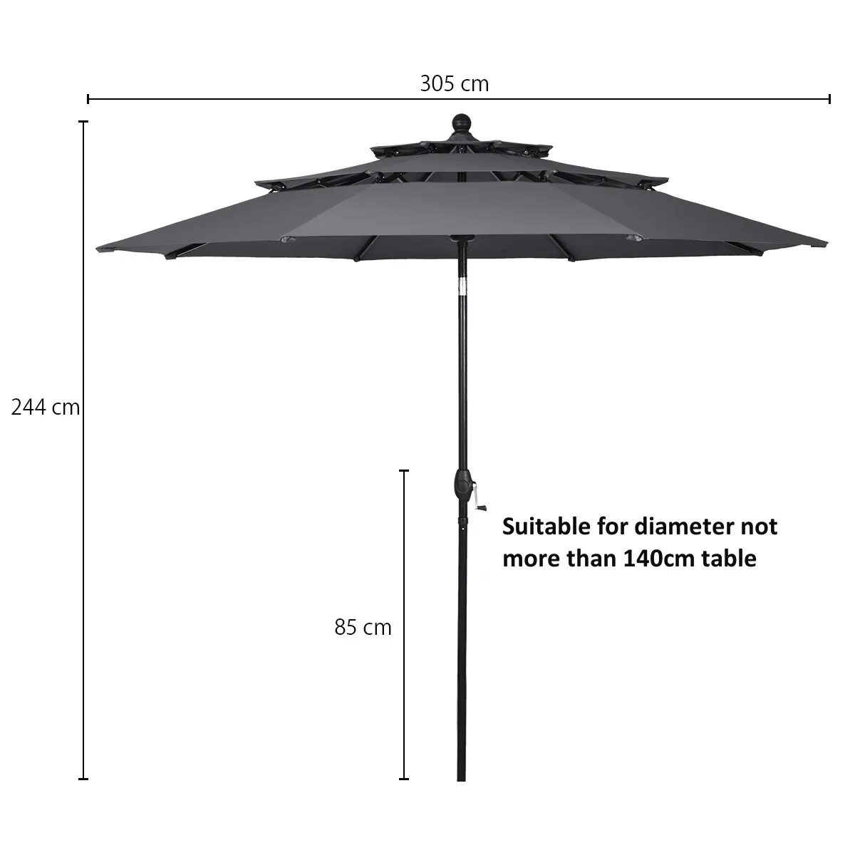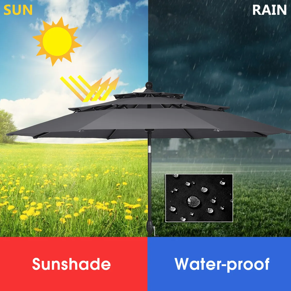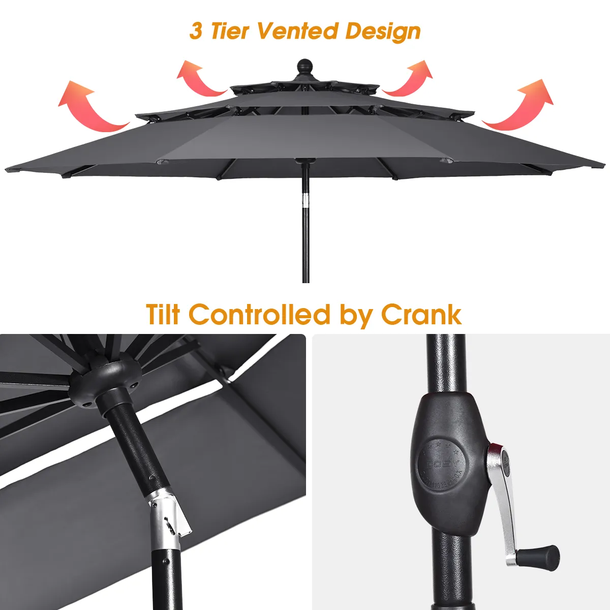 【Drietraps en dubbel geventileerd】: In tegenstelling tot andere parasols geeft de drietraps parasol met twee windopeningen je buitenruimte niet alleen mode en elegantie, maar zorgt ook voor een goede luchtcirculatie. (De paraplustandaard is niet inbegrepen)