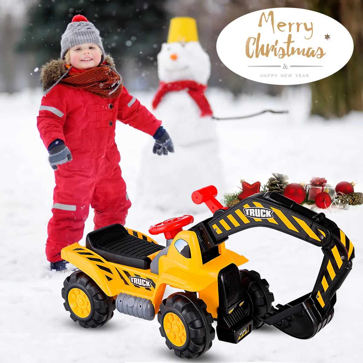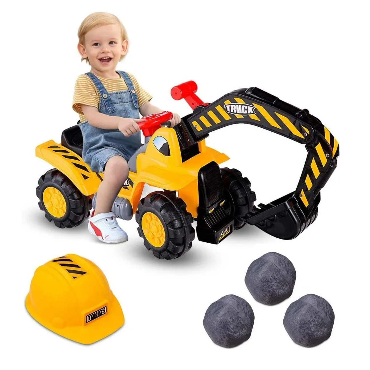 【Realistische rijervaring】Door de echte graafmachine te simuleren, voldoet deze kindertruck met voor- en achterwaartse functies aan de nieuwsgierigheid van uw kleintje. En de vele geluiden trekken zijn of haar aandacht. De bijgeleverde kinder veiligheidshelm en speelgoedsteen zorgen voor extra geluk.