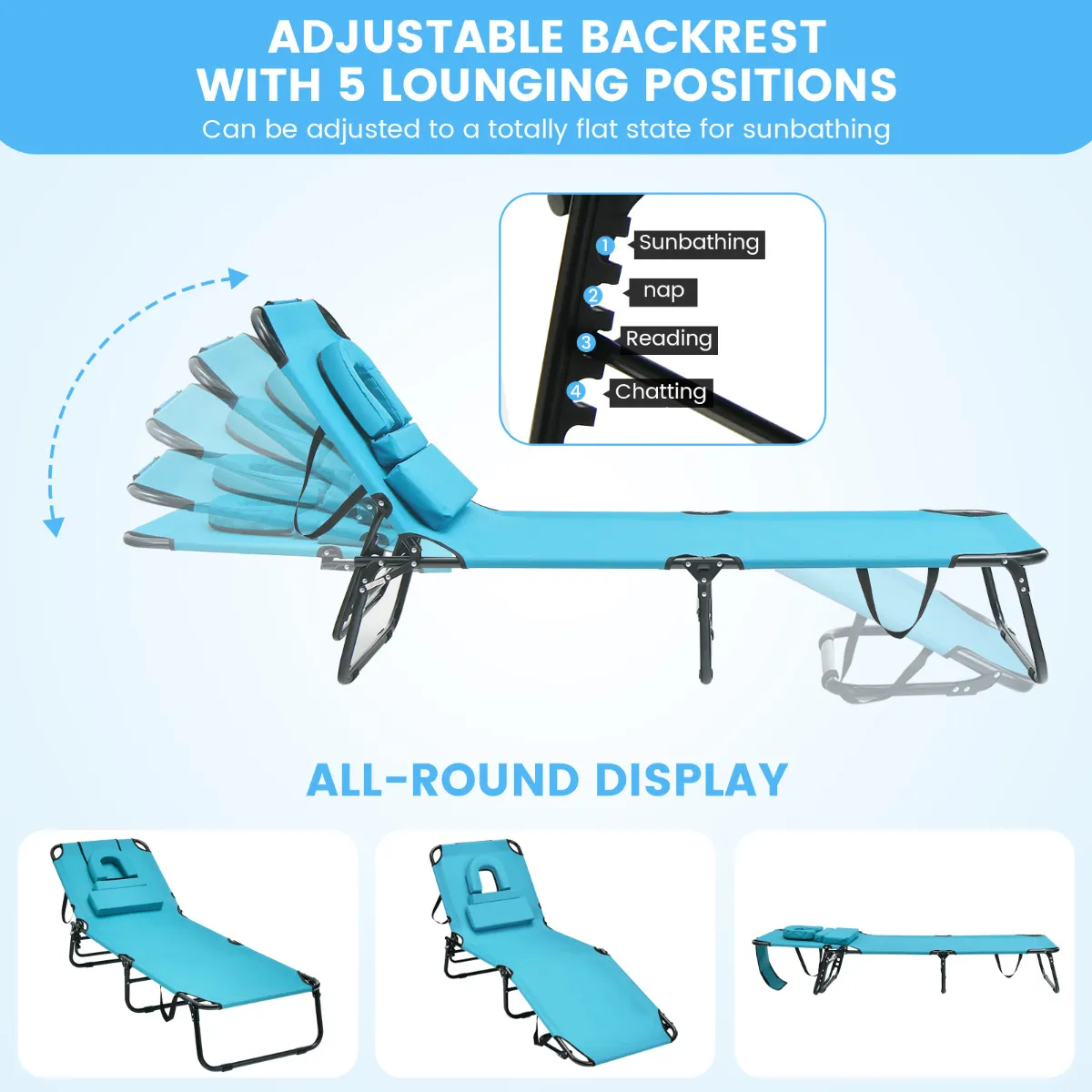 Verstelbare rugleuning met 5 standen voor zonnebaden, lezen, kletsen en meer