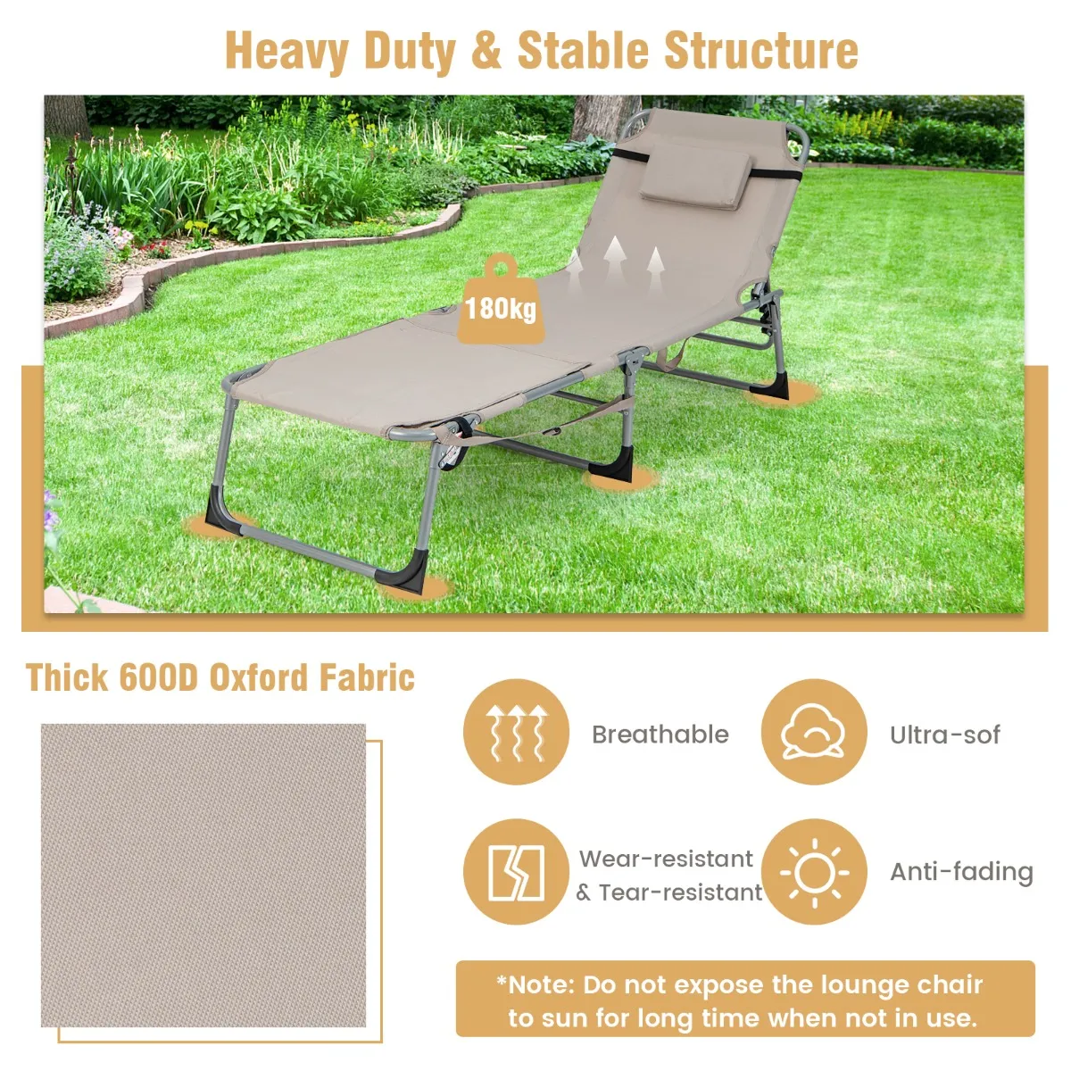 Zonneligstoel Met Gezichtsopening Opvouwbare Ligstoel Met Verstelbare Rugleuning En Voetensteun Afneembaar Kussen Zijzak-Beige