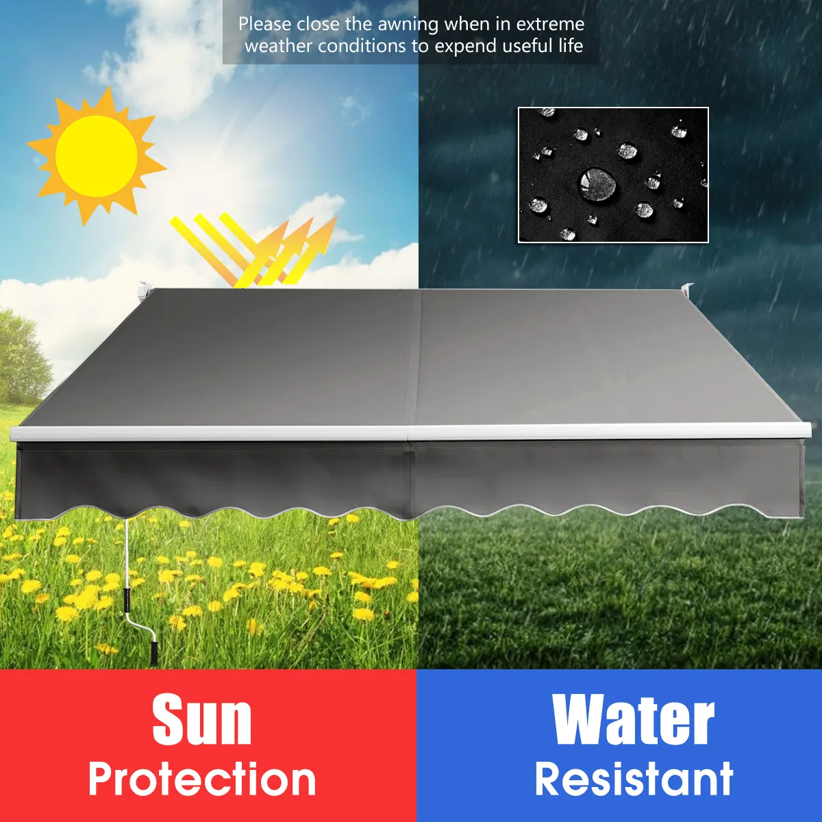 Uitschuifbaar ontwerp en eenvoudig te gebruiken : Wanneer niet in gebruik, trekt deze luifel moeiteloos in. Dankzij de praktische, lange handslinger kunt u de luifel op elk moment eenvoudig in- en uitschuiven. U hoeft alleen de slinger met de klok mee of tegen de klok in te draaien.