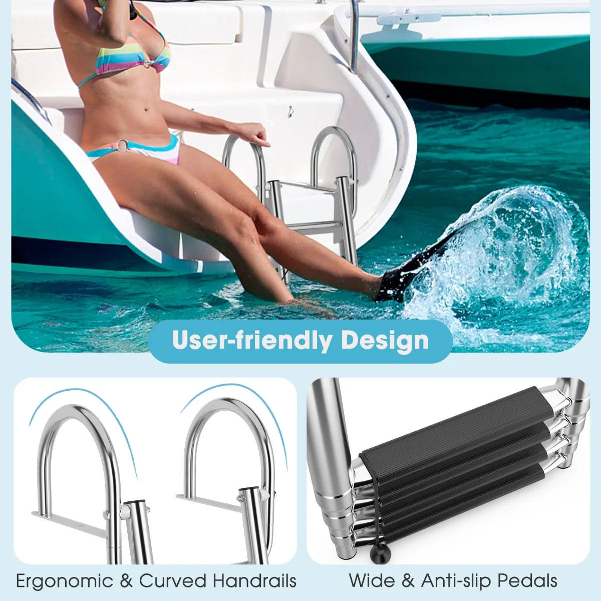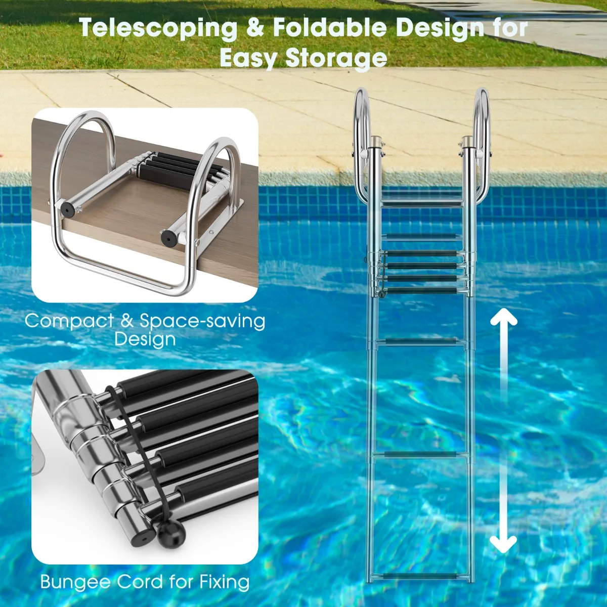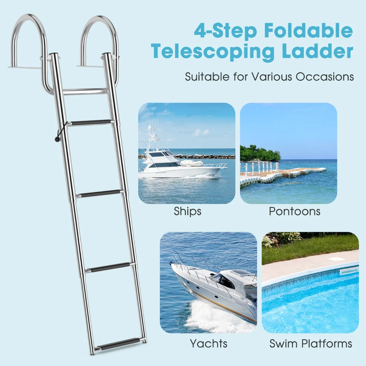 Deze 4-traps inklapbare telescopische ladder is het perfecte gereedschap voor eenvoudig in- en uitstappen in het water.