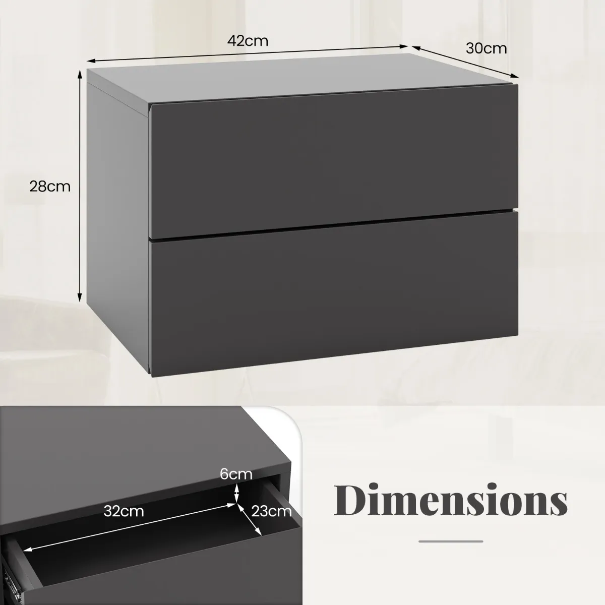 U kunt dit nachtkastje op elke gewenste hoogte hangen, waardoor u kostbare vloerruimte bespaart. Bovendien zijn de meegeleverde wandmontagesets speciaal ontworpen voor een veilige en stabiele installatie. De combinatie van een breed bovenblad en 2 lades zorgt voor overzichtelijke opbergruimte voor uw spullen voor de nacht. Dit nachtkastje voor aan de muur is ideaal voor gebruik in de slaapkamer, woonkamer of op kantoor. Het is veelzijdig en ziet er mooi uit.
